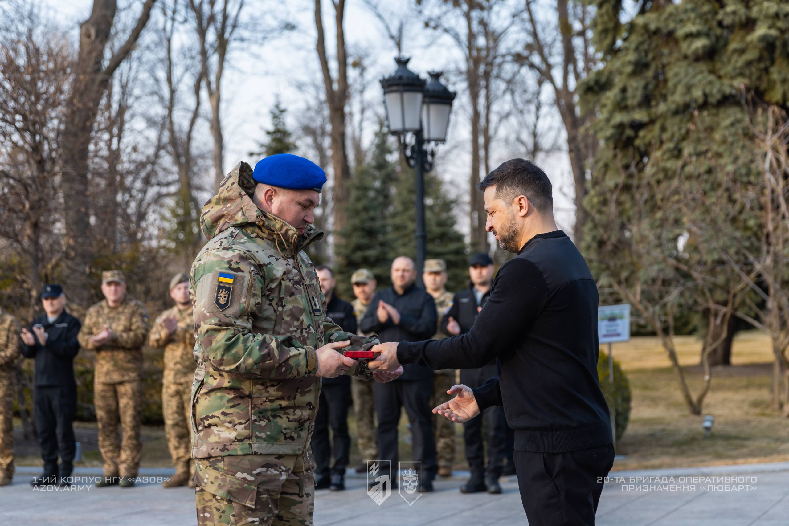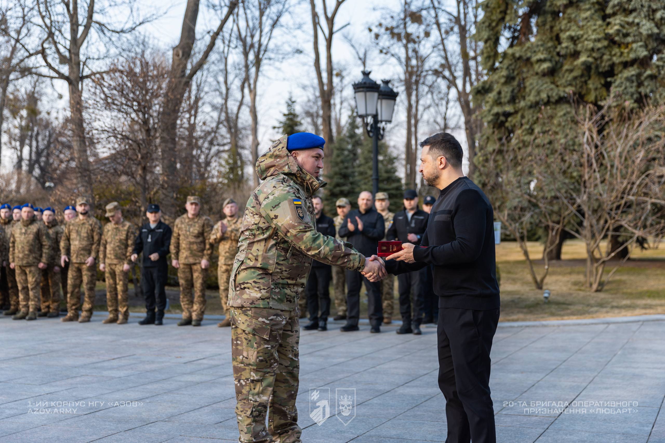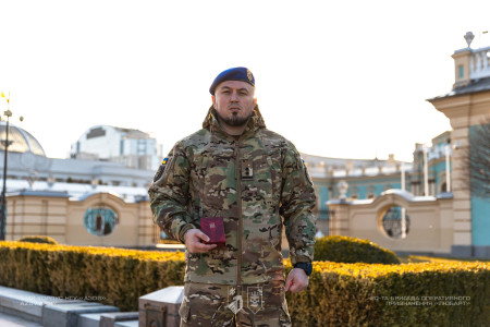 З нагоди Дня Національної гвардії президент вручив державну нагороду командиру 20-ї бригади «Любарт» 1-го корпусу НГУ «Азов» підполковнику Вадиму Крикуну.