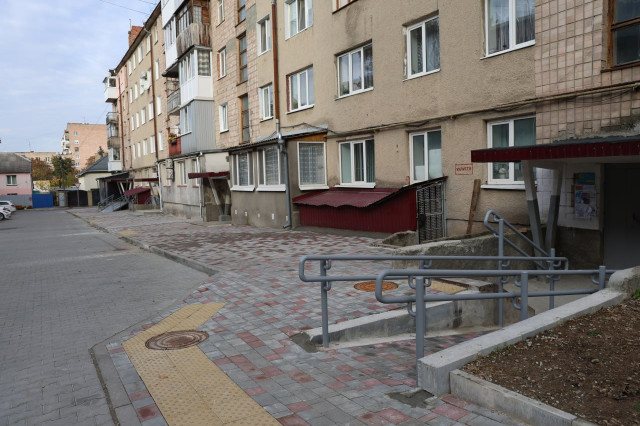Цьогоріч провели роботи з облаштування кількох пандусів і сходових підйомників у під’їздах житлових будинків. І будемо ставити ще, бо є звернення від мешканців. Для забезпечення доступності департамент житлово-комунального господарства постійно виконує роботи з влаштування пішохідних переходів з пониженням бордюрного каменю та тактильною плиткою.Під час будівництва, реконструкції або капітального ремонту світлофори облаштовують звуковими сигналами. Адаптовані під потреби людей з інвалідністю пішохідні переходи облаштовують в процесі ремонтів вулиць, тротуарів, прибудинкових територій. Також понижуємо бордюрний камінь біля під’їздів, тактильною плиткою позначаємо зупинки громадського транспорту.Одне із головних завдань – зробити місто комфортним та доступним для кожного, зокрема і для ветеранів, які, на жаль, отримали інвалідність.Поінформуйте про те, де було виконано ремонт прибудинкових територій цьогоріч.