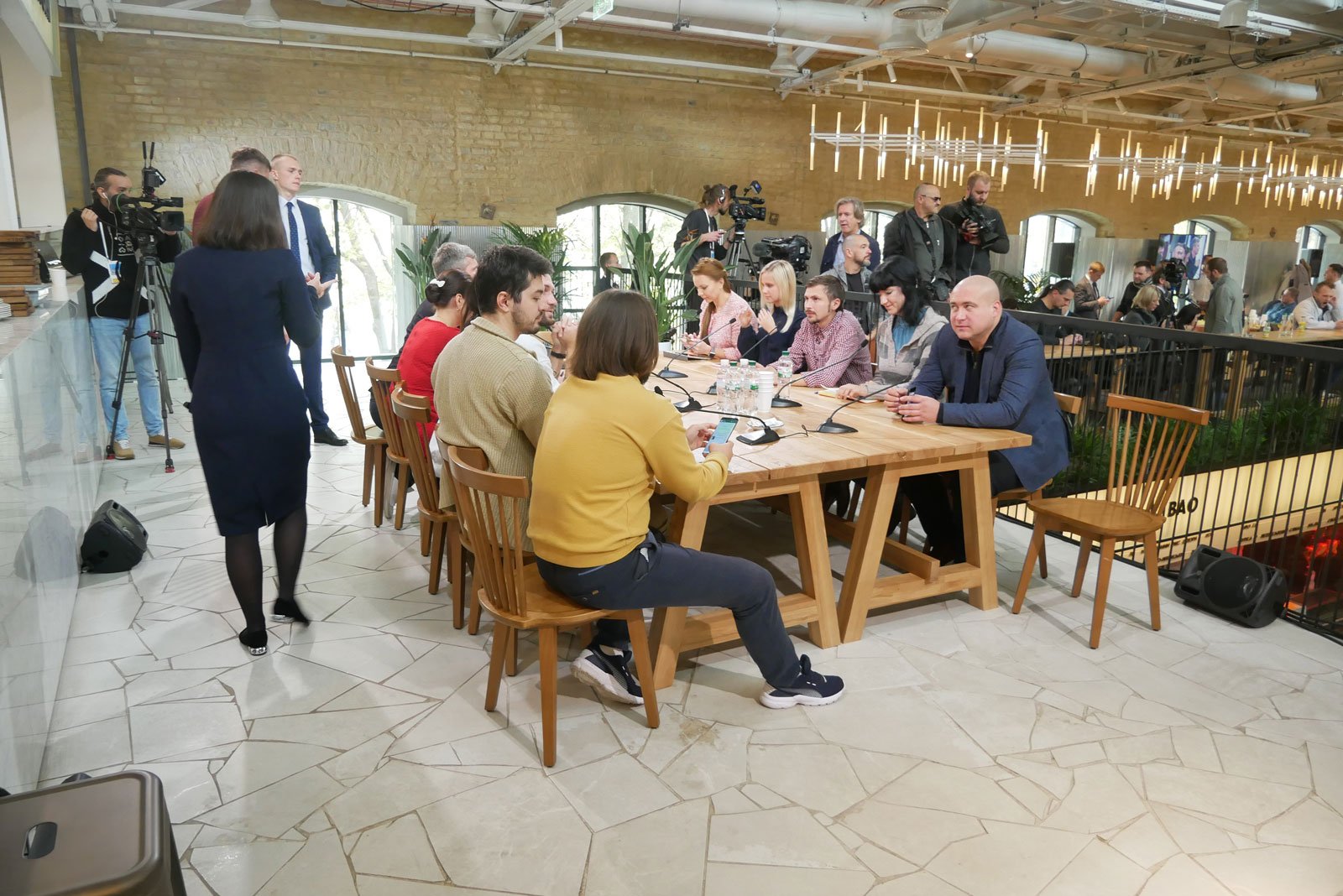 Журналісти, акредитовані на пресмарафон з Президентом України Володимиром Зеленським, зібралися у Kyiv Food Market.