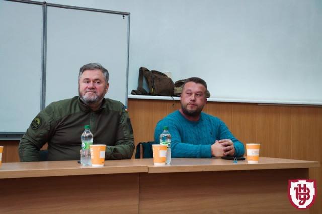 27 вересня відбулася зустріч студентів факультету економіки та управління ВНУ з полковником, командиром батальйону оперативного реагування «Луцьк» Олександром Тиводаром та провідним адвокатом, начальником юридичної служби батальйону Олександром Лавренчуком.