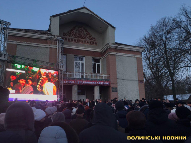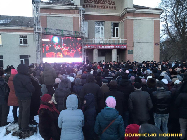 Перед місцевим будинком культури зібралось близько тисячі волинян, проте в залу місцевого будинку культури пропускали лише тих, хто є у спеціальних списках. Інші ж змушені були очікувати можливості побачити президента на вулиці.