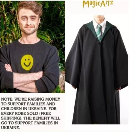 Актор оголосив, що продає мантії різного кольору з Гоґвортсу, а отримані гроші від продажу відправить на допомогу українським сім’ям, які постраждали від військової агресії РФ. Як пише НВ, про це повідомляється на сайті Magicartz, де продають мантії.