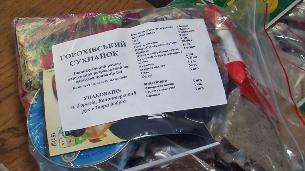 «Не завжди вдається розгорнути кухню в бойових польових умовах. Є моменти, коли впроголодь треба вести бій і тримати позиції. Продуктові набори розраховані на два дні. За весь період ми їх понад тисячу створили», – каже керівник коледжу.Зі слів кухарки Ольги Козак, чотири дні на тиждень випікають хліб та пиріжки: «Пиріжки з яблуками, яких ми сьогодні наліпили близько 400 штук. Завтра заберуть волонтери і вони поїдуть на фронт, для наших хлопців з 14-ї бригади».Читати ще: Волонтери на Волині виготовляють свічки для військових