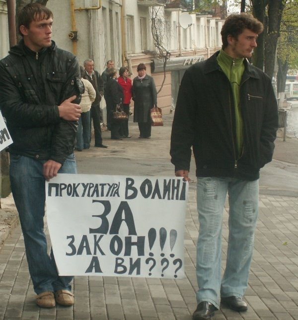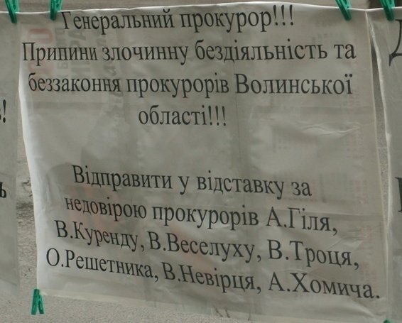 Пікетувальники незадоволені діями прокурора Волинської області Андрія Гіля. Серед протестуючих лучани, жителі інших міст та сіл Волині, представники громадських організацій.
