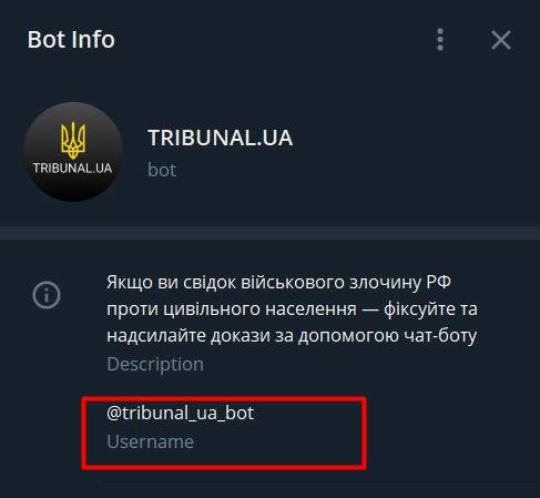 Усі дані відправляйте у спеціальний чат-бот в Телеграмі TRIBUNAL.UA.