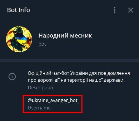 Важливо! У Телеграмі вже є кілька десятків ботів зі схожою назвою, тому будьте пильні. Адреса офіційного бота кіберполіції виглядає так @ukraine_avanger_bot.