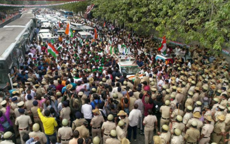 Фермери пробили барикади поліції та звернули з маршруту, який був попередньо узгоджений із правоохоронцями, та рушили в бік центру Делі пішки та на тракторах. Раніше поліція дозволила цей марш, але проклала його маршрут околицями столиці, аби демонстранти не заважали щорічному військовому параду з нагоди Дня республіки.