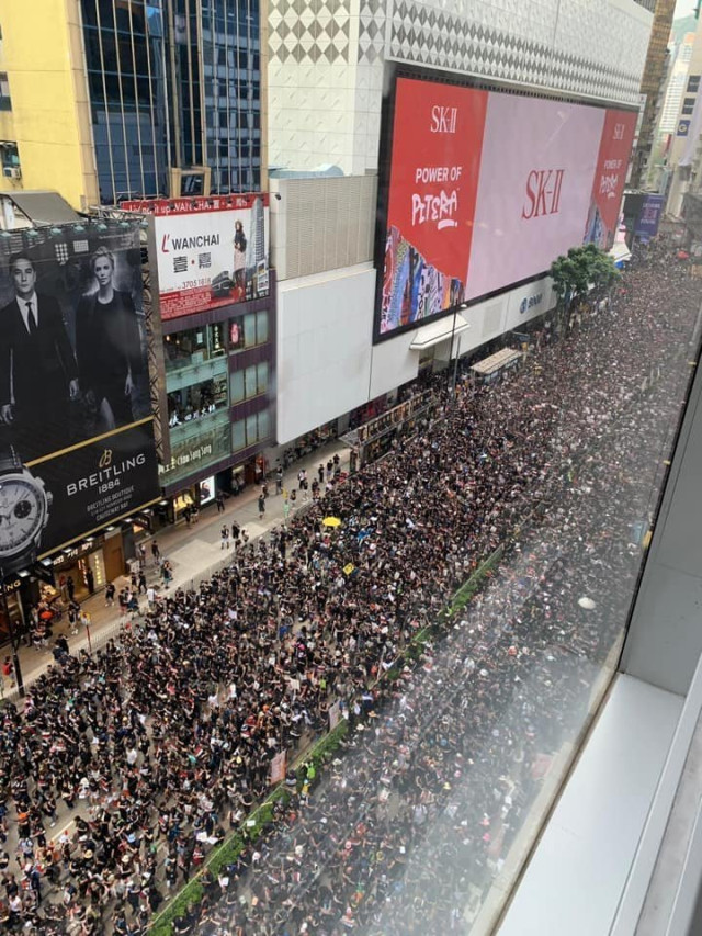 Натовпи людей почали мирний марш по Хеннессі-роуд, через 30 хвилин після початку маршу поліція випустила в демонстрантів кілька залпів сльозогінного газу.