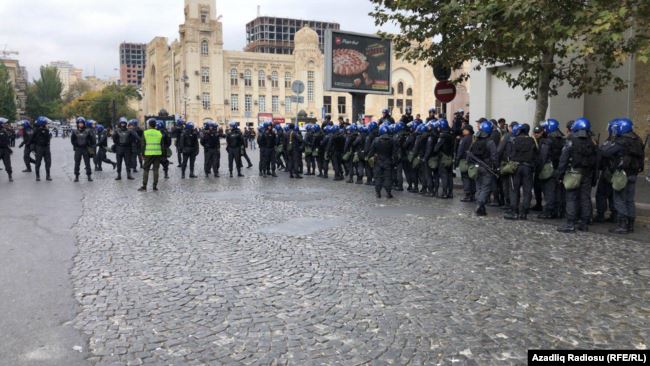 Акція 19 жовтня не узгоджена з владою. Центр міста оточений поліцією, кілька станцій метро зачинені. Також повідомляють про відключення мобільного інтернету в центральній частині Баку.