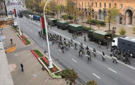 «З самого ранку в Мінську в різних частинах міста була помічена військова техніка і мікроавтобуси з силовиками. На майдані Незалежності та біля музею ВВВ виставили огорожу. У деяких районах формуються ланцюги солідарності», – йдеться в повідомленні.