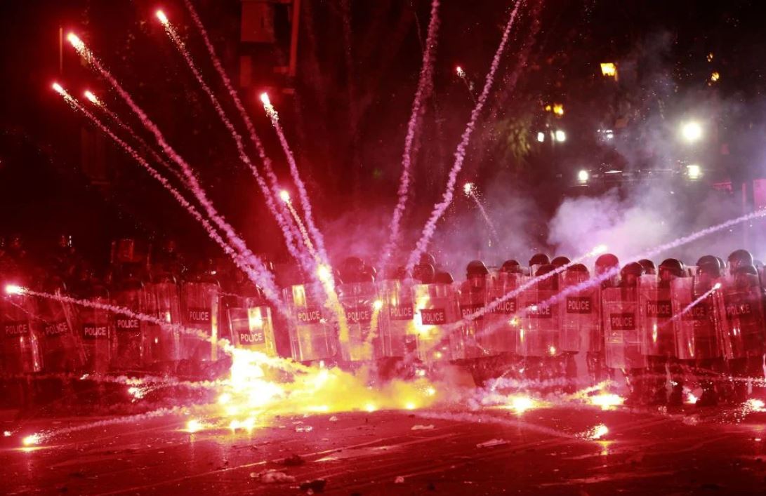 Напередодні в акції протесту проти рішення влади призупинити євроатлантичну інтеграцію взяли участь десятки тисяч людей. Спершу основна маса протестувальників скандувала гасла біля будівлі парламенту, перекривши проспект Руставелі, але згодом ситуація загострилася. Мітингувальники почали кидати в поліцейських петарди та пляшки з фарбою, стукати різними предметами у ворота будівлі парламенту та намагатися виламати бічні ворота. У відповідь на дії учасників протесту поліція застосувала водомети та перцевий газ, почалися затримання.