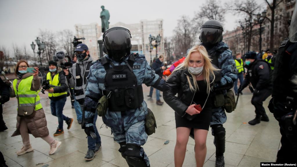 У Росії кількість затриманих на акціях протесту з вимогою звільнити опозиціонера Олексія Навального наближається до трьох із половиною тисяч, що є найвищим показником у сучасній історії цієї країни.