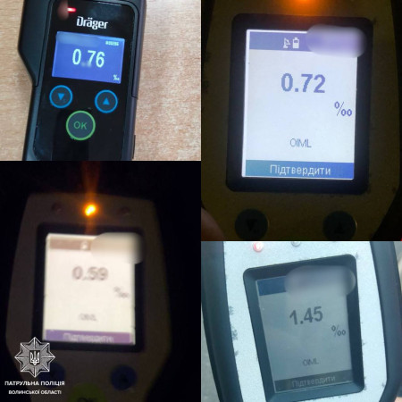 Протягом вихідних волинські патрульні виявили та задокументували 8 випадків керування транспортними засобами водіями з ознаками алкогольного сп’яніння.