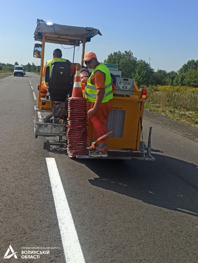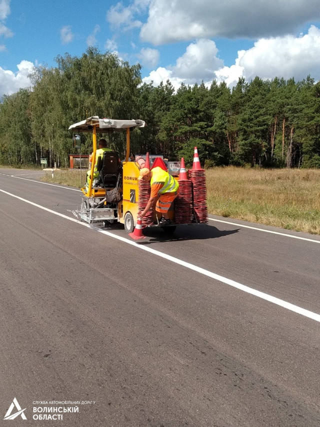 У Волинській області на двох автомобільних дорогах державного значення оновили горизонтальну дорожню розмітку на ділянках загальною протяжністю 100 кілометрів.