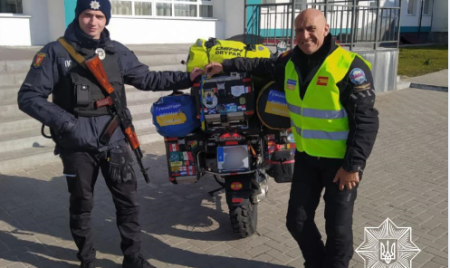 Учора на одному із стаціонарних постів до патрульних звернувся громадянин Іспанії, який самотужки приїхав в Україну на мотоциклі.
