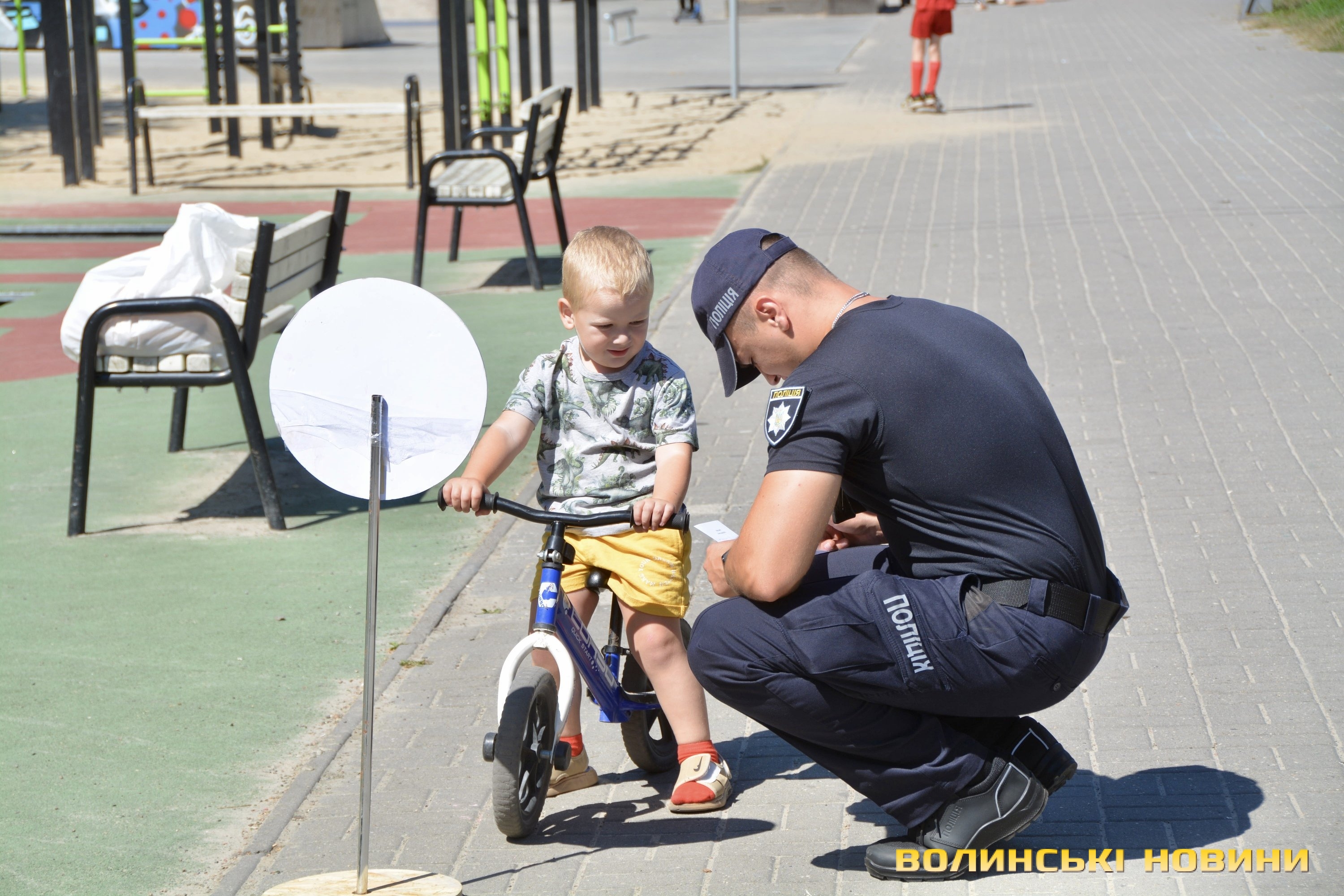 Маленьких велосипедистів і пішоходів у Луцьку навчали основних правил дорожнього руху. Для них організували квест із перехрестями, дорожніми знаками та розміткою. За успішне проходження такої імпровізованої траси всі учасники отримали подарунки.