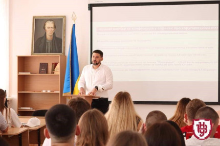 Також було обговорено низку важливих питань, як-от: що таке антикорупція; ключові елементи ефективних антикорупційних заходів; як запобігти корупції; освітні ініціативи для поширення доброчесності. Також на студентів чекав невеличкий інтерактив і подарунки, а декан Антон Демчук отримав від Вікторії Скоробагатої оновлений примірник дисципліни «Антикорупція і доброчесність».На завершення заходу слова подяки від адміністрації та ректора університету Анатолія Цьося мовив проректор з навчальної роботи та рекрутації Юрій Громик: «Ми вам щиро дякуємо за ідею цієї дисципліни. На цей вибірковий курс зареєструвалося 60 із 60 можливих студентів. Це засвідчує, з одного боку, що дисципліна, без сумніву, актуальна, з іншого боку, молоді люди відчувають важливість цієї проблематики. Тому і надалі ми цю дисципліну в каталозі вибіркових будемо пропонувати і сподіваємося, що коло слухачів розширюватиметься не тільки за рахунок студентів-юристів, а й інших факультетів. Вам – успіхів, натхнення, усім нам – Перемоги».
