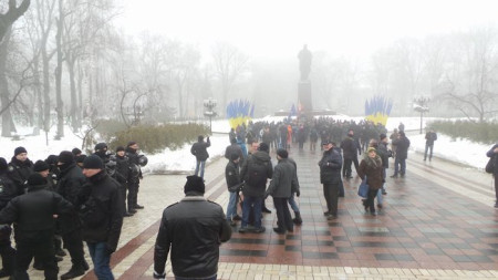 Прихильники екс-голови Одеської ОДА Міхеїла Саакашвілі "прорвали" кордон поліції біля пам'ятника Т. Шевченка в Києві.