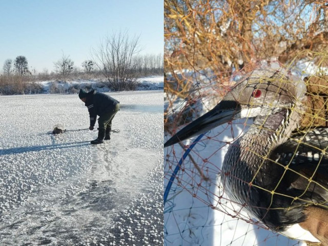 Примерзла до криги: у Луцьку рятували рідкісну гагару