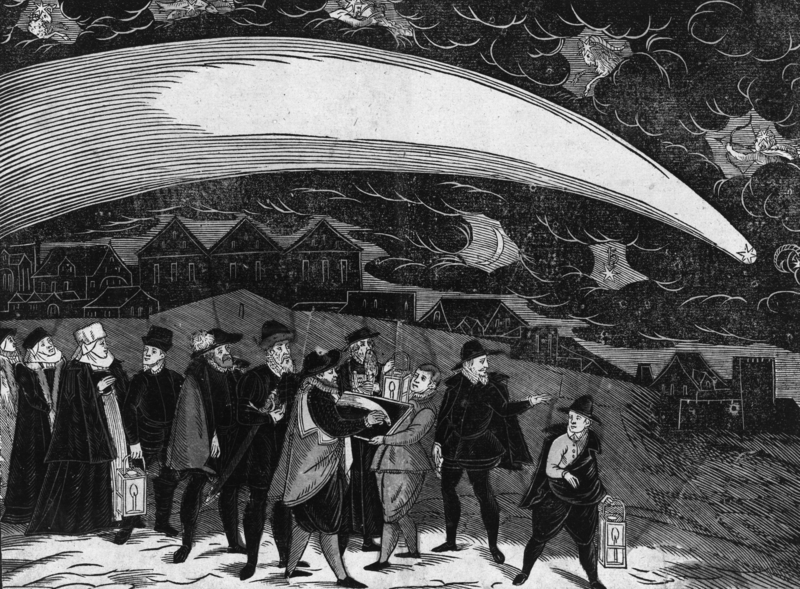 Велика комета над Прагою, 12 листопада 1577 року. Гравюра Їржі Дачіцького