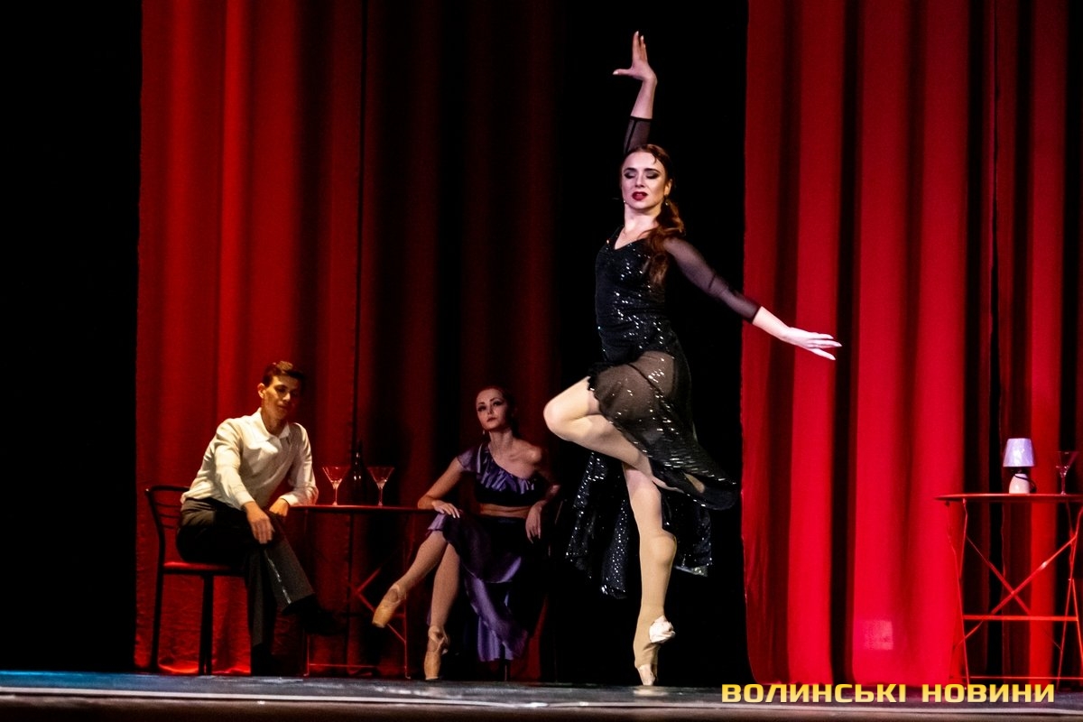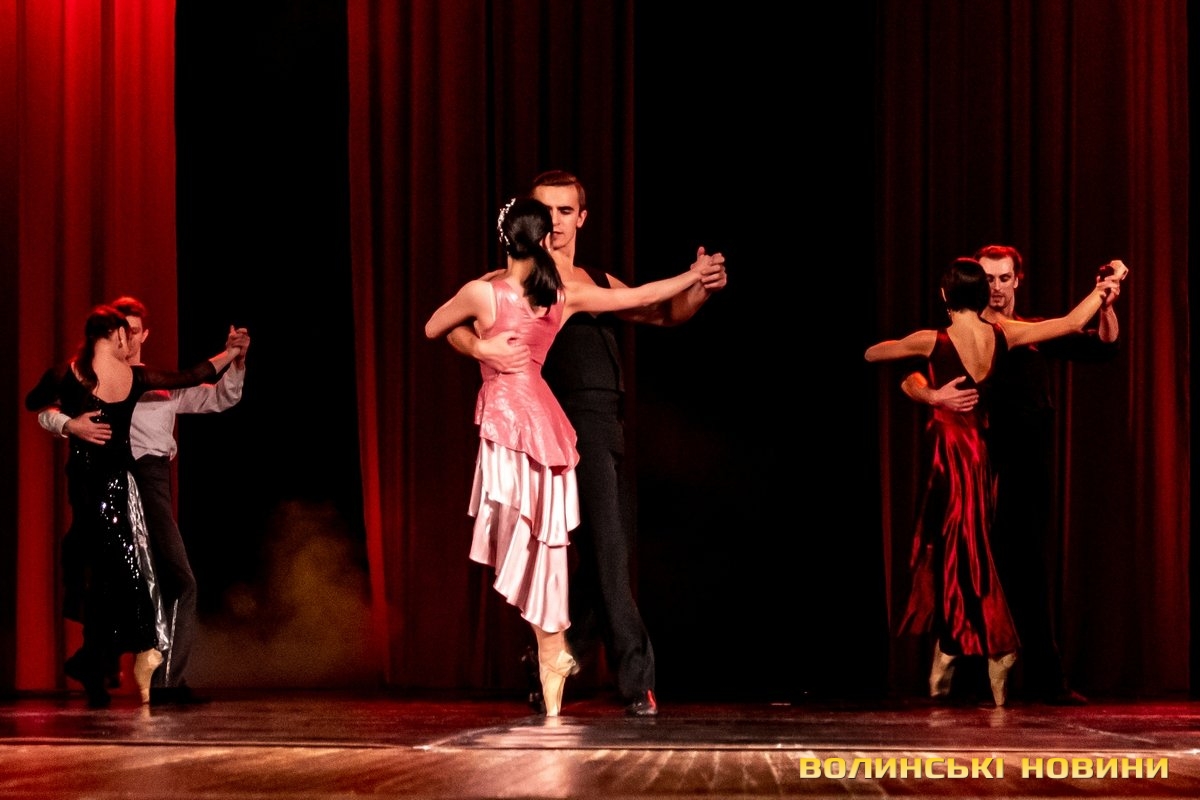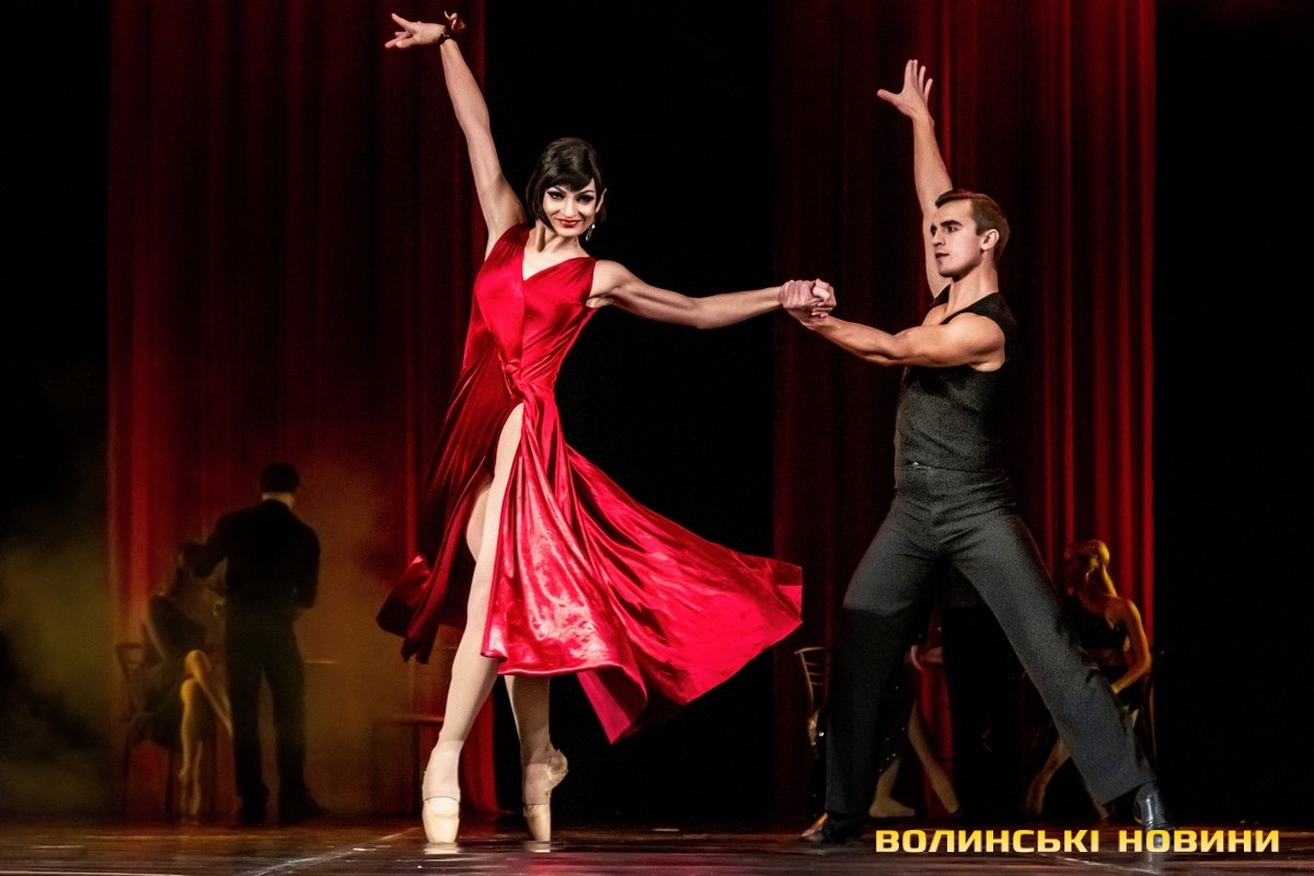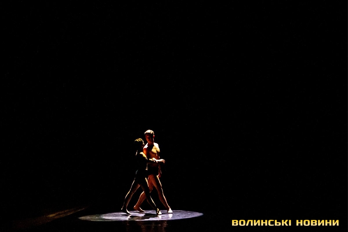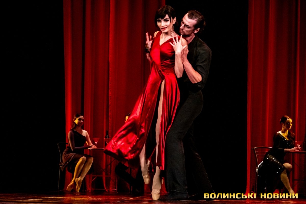 Перед враженими глядачами розгорнулася справжня музично-танцювальна феєрія – інакше важко назвати цю виставу. У двох актах «Танго на пуантах» артисти Art Ballet Company, керівником якого є провідний соліст Київ Модерн балету Артем Шошин, до речі, сам родом із Луцька, демонстрували високу техніку та віртуозність.Перший акт вистави склали мініатюри з класичних балетів і авторські обробки у стилі модерн. Кожен виступ розпочинався з темряви у залі. Після цього на сцені з’являлися артисти у костюмах і розпочиналося неперевершене дійство з музикою, грою світла та емоціями виконавців.У другому акті глядачі побачили музичну історію про чотирьох людей, які шукають кохання. «Історії в стилі Танго»: саме таку назву має цей окремий твір – перший і єдиний в Україні сучасний одноактний балет. А ще це – своєрідна шаноблива присвята великому майстру танго Астору П’яццоллі, сторічний ювілей якого відзначали цьогоріч.Саме музика Великого Астора і стала основою для «Історій у стилі Танго» – пристрасних, трагічних, романтичних…Зрештою, ця вистава – найкращий доказ того, що сотні слів не можуть замінити побаченого. Особливо, якщо це стосується музики, танцю, пристрасті.Пропонуємо помилуватися яскравими моментами «Танго на пуантах» через світлини, які для вас підготувало Інформаційне агентство Волинські Новини.