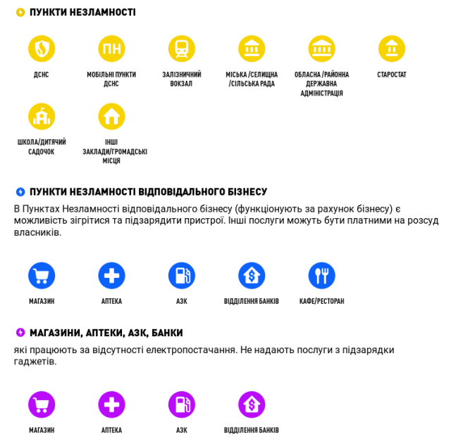 Пункти незламності на онлайн-мапі розділили на три категорії