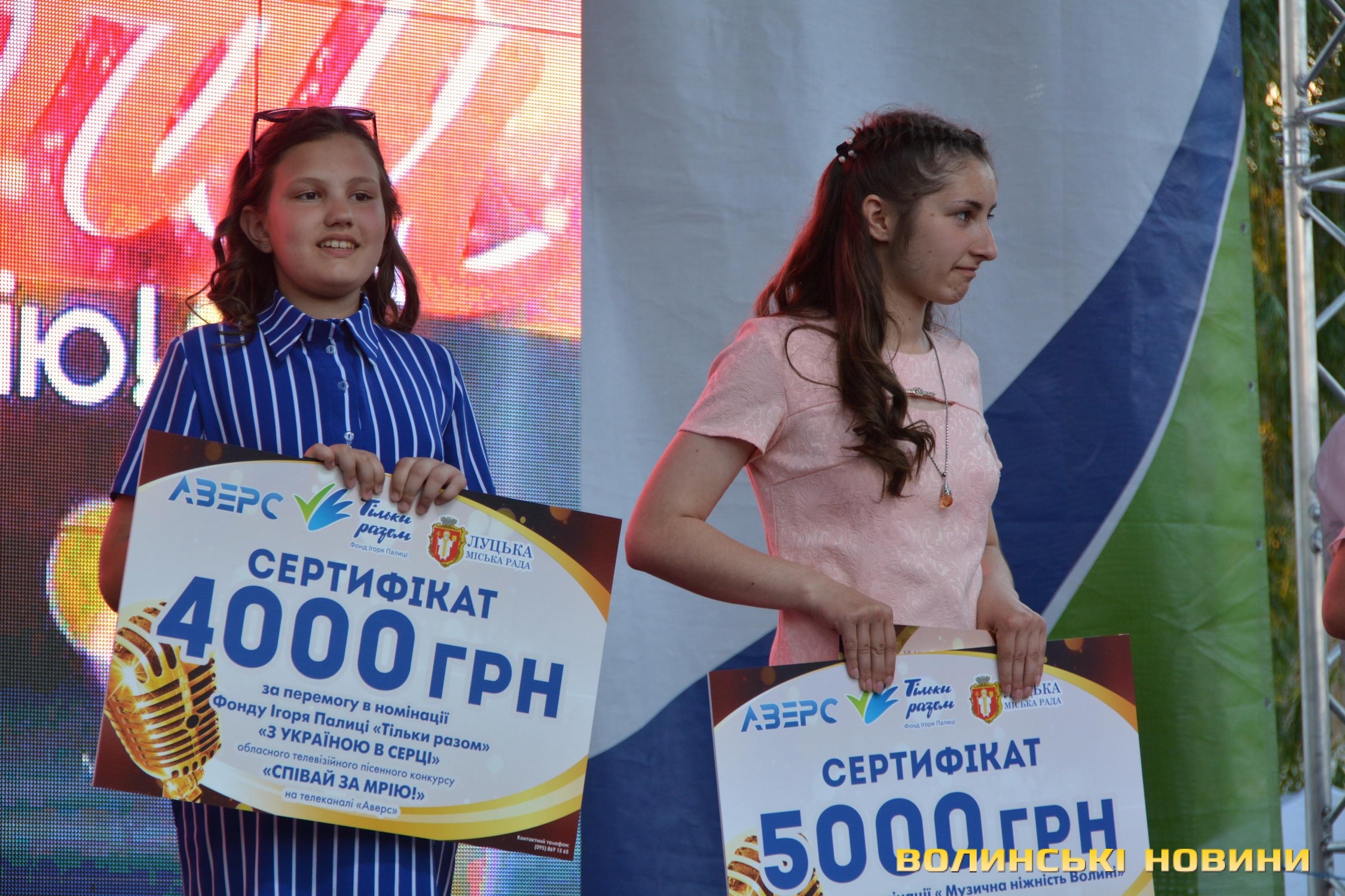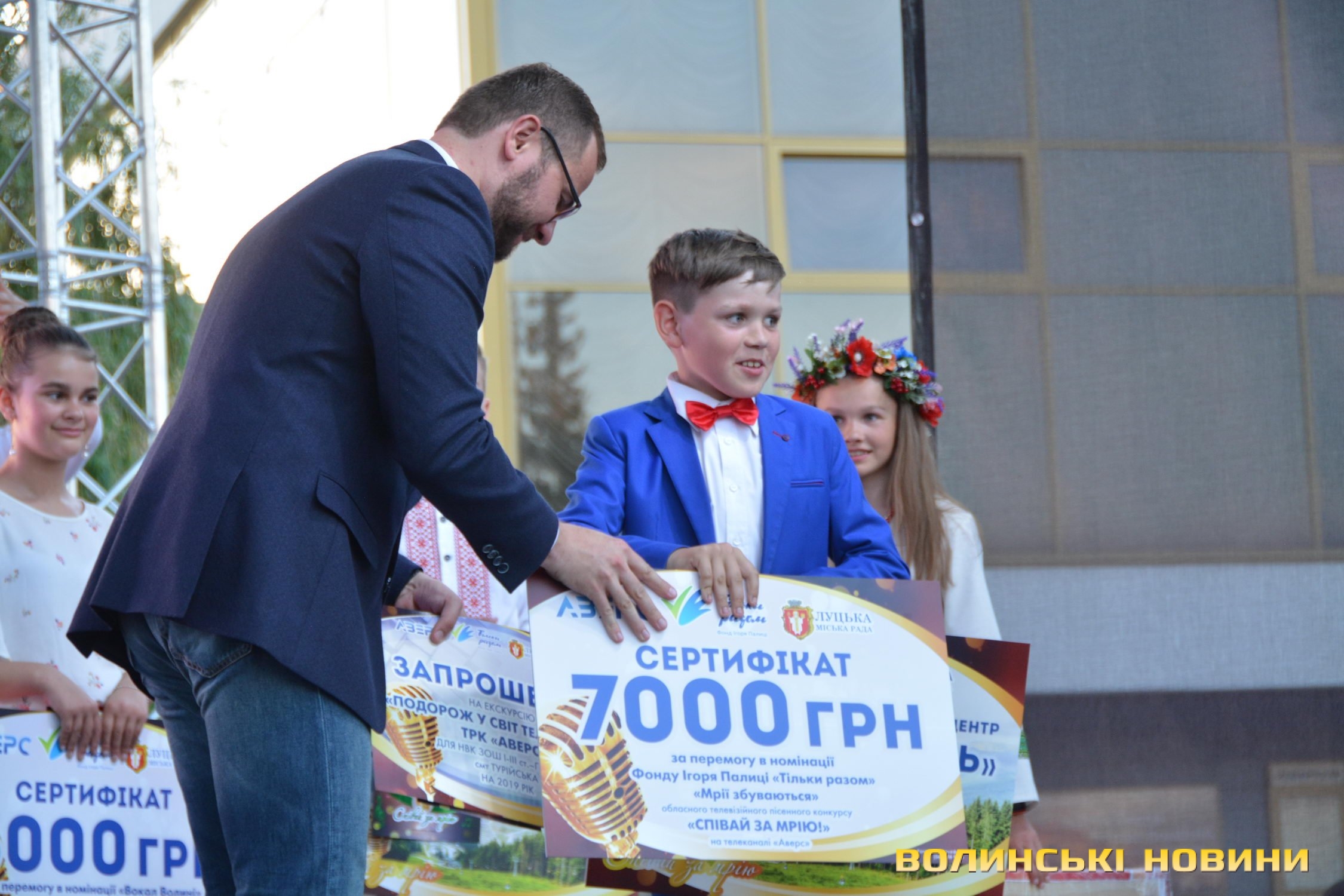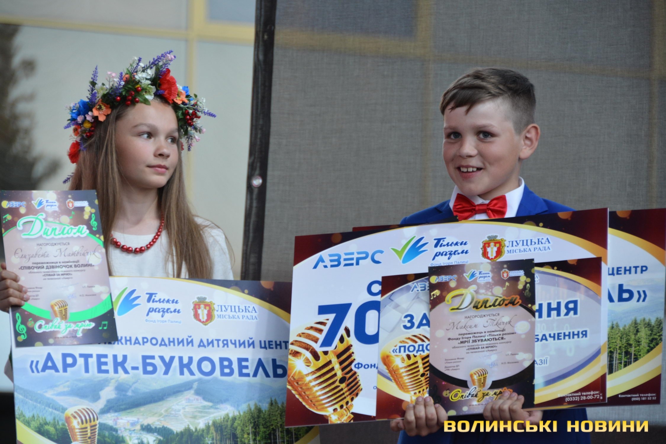 Фотокартини, дипломи, сувеніри, сертифікати на придбання музичних інструментів, путівки в Буковель, зйомки відеокліпів та екскурсії телестудією – 119 юним талантам із усієї Волині вручили нагороди за участь у конкурсі «Співай за мрію».