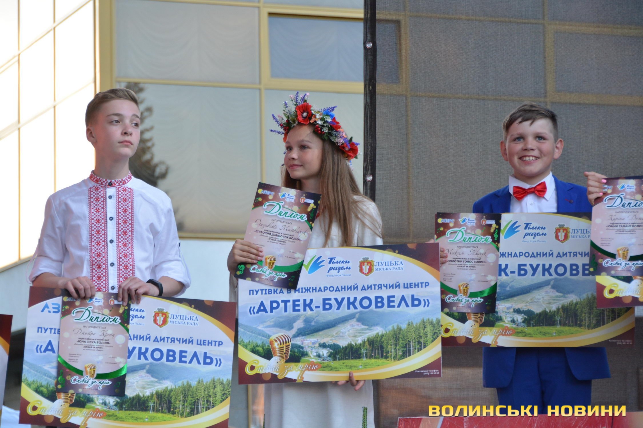 - ІІІ місце – учениця спеціалізованої школи № 1 Луцької міської ради Христина Андрущак, яка виконала пісню «Ой, у лісі калина»;- ІІ місце – учениця Луцької гімназії № 18 Владислава Волинець, яка представила композицію «Українська дівчинка мала»;- І місце – учениця школи № 1 Луцької міської ради Катерина Кунашенко, котра заспівала твір «Крила янгола».Окрім фотокартин, сувенірних пакунків і дипломів, дівчатка отримали сертифікати на екскурсії телестудією для всієї школи, де навчаються, а також сертифікати на зйомки кліпу (ІІ та ІІІ місця) чи відпочинок у таборі «Артек-Буковель» (І місце).Також Фонд Ігоря Палиці «Тільки разом» спільно з телеканалом «Аверс» провели незалежне оцінювання і визначили ще вісім номінантів, четверо з яких одержали путівки в «Артек-Буковель», а четверо інших – грошові сертифікати в магазин музичних інструментів.Переможцем у номінації «Золотий голос Волині» став учень ЗОШ І-ІІ ст. – гімназії смт Турійськ Максим Ткачук.