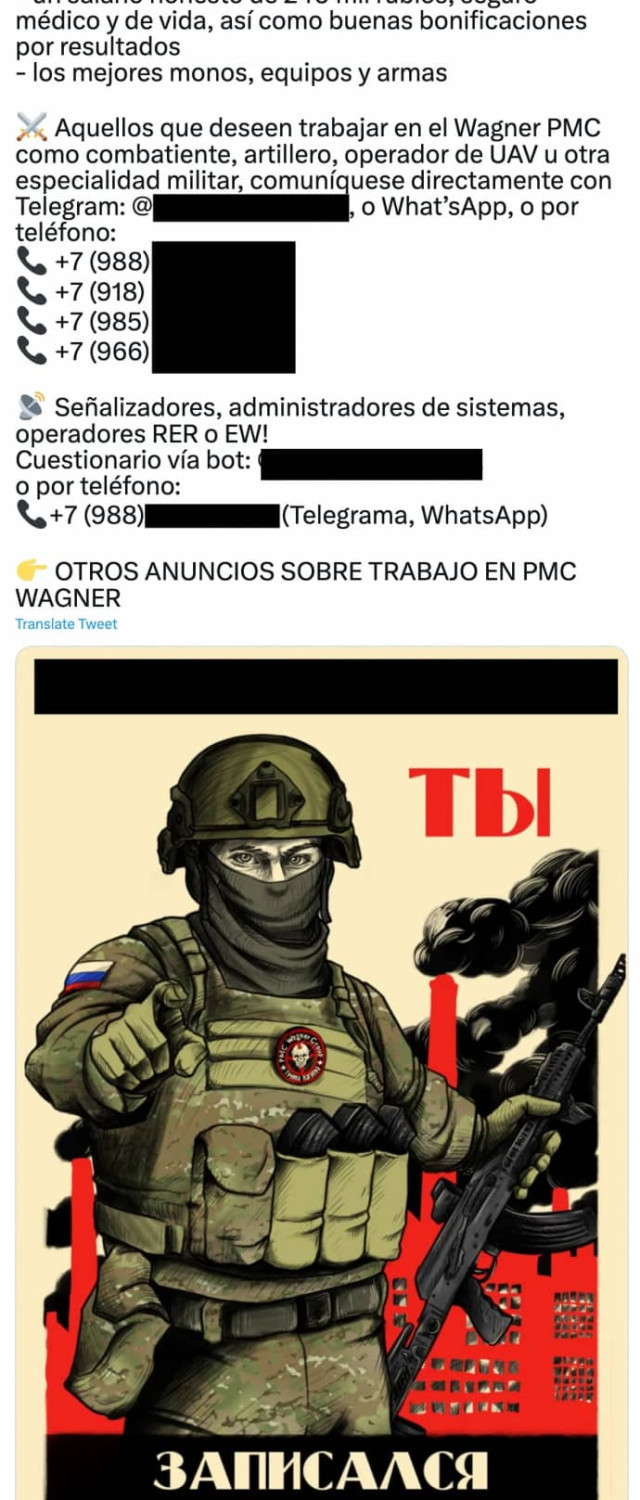 В одному з дописів французькою мовою повідомляється, що найманці отримують оплачувані вихідні, медобслуговування, високу платню і можливість працювати по всьому світу.