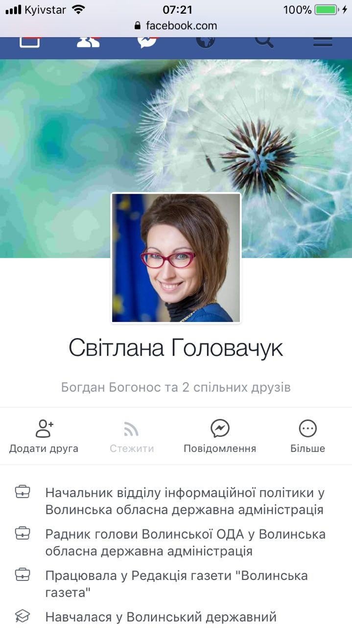 У Волинській ОДА Світлана Головачук допомагає представнику Петра Порошенка на Волині Володимиру Гунчику налагоджувати зв’язки і комунікувати з громадою області. Однак спосіб, який вона використовує для цього, викликає здивування та обурення навіть у колег по цеху.