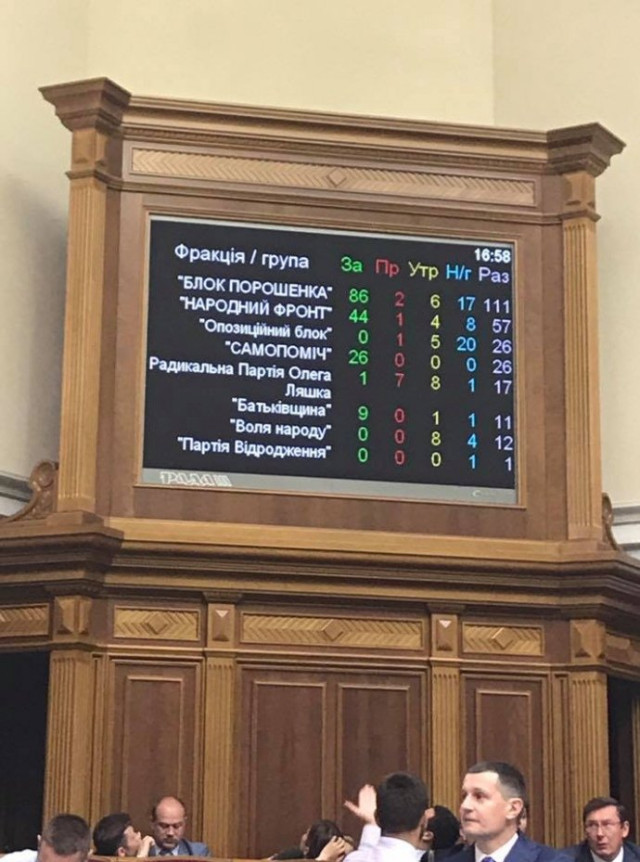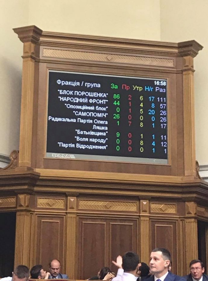 Як видно із результатів голосування, оприлюднених на сайті парламенту, попри декларовані раніше заяви фракцій БПП та "Народного фронту" про одностайність підтримання подань на зняття депутатського імунітету, внесених Генпрокуратурою, "проти" голосували нардепи БПП Бронзович і Лубинець (ще 6 утрималися), а також Павло Пинзеник із "Народного фронту" (ще 4 його колег по фракції утрималися).