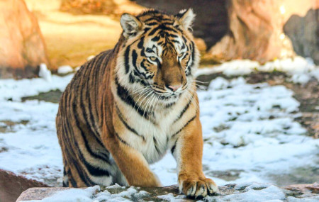 Ранковий сніжок сподобався луцькому тигру Тамерлану, який вийшов на прогулянку у «Луцькому зоопарку». Побачивши фотографа, цей великий котик почав позувати, а подекуди й облизувався.