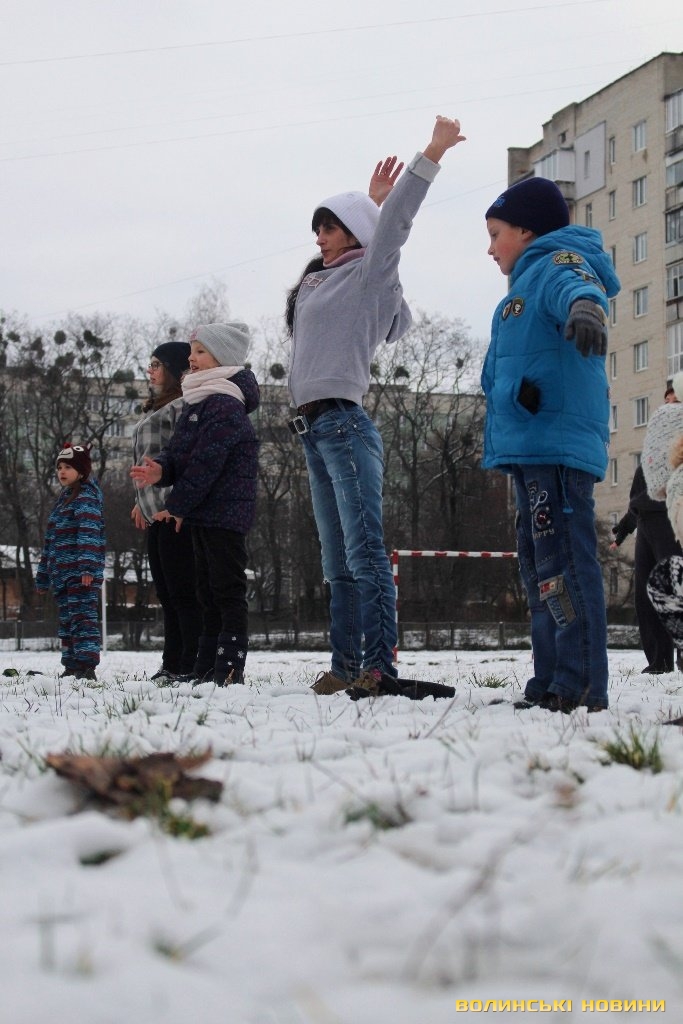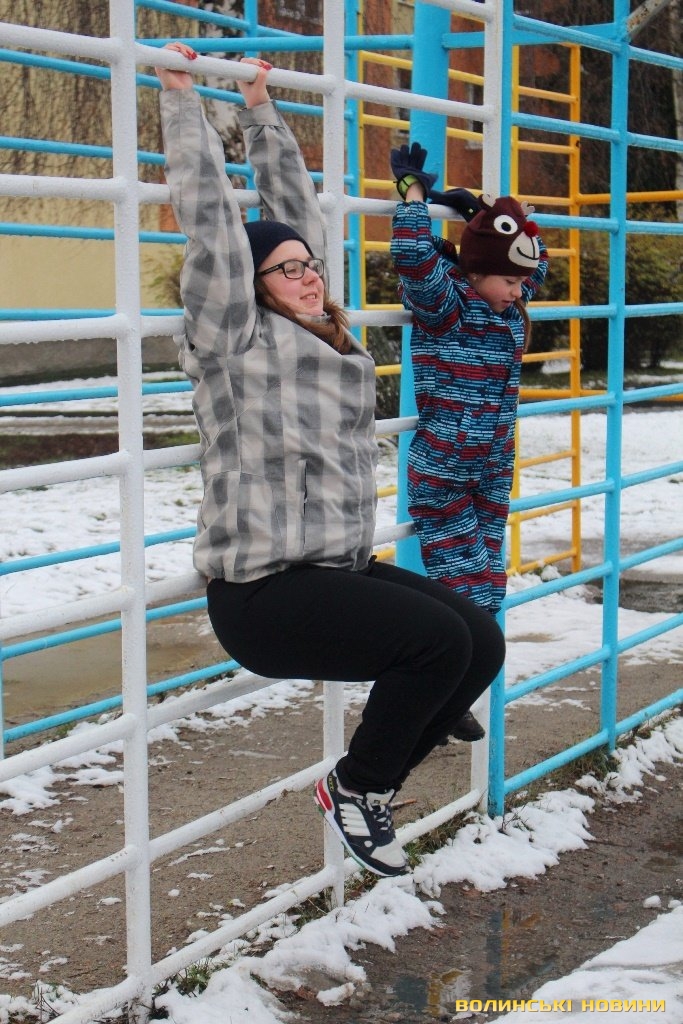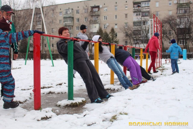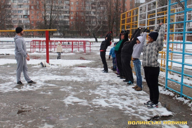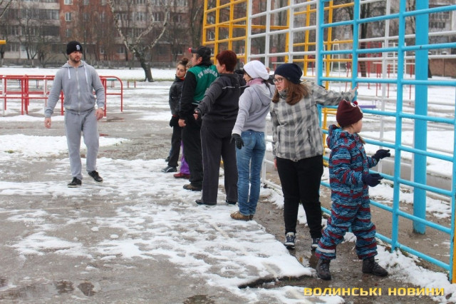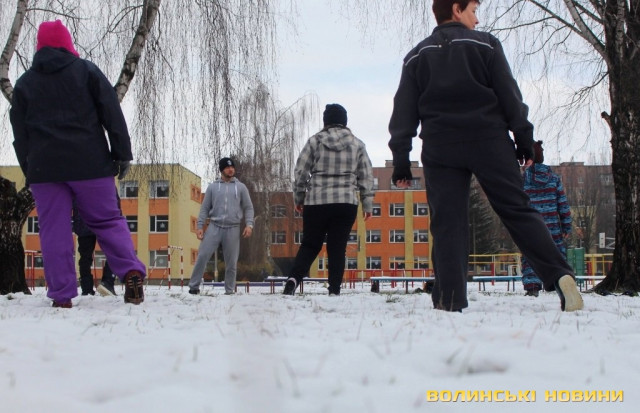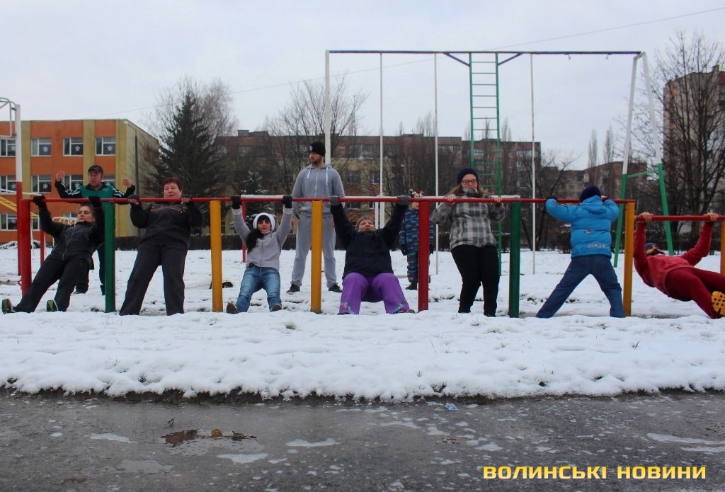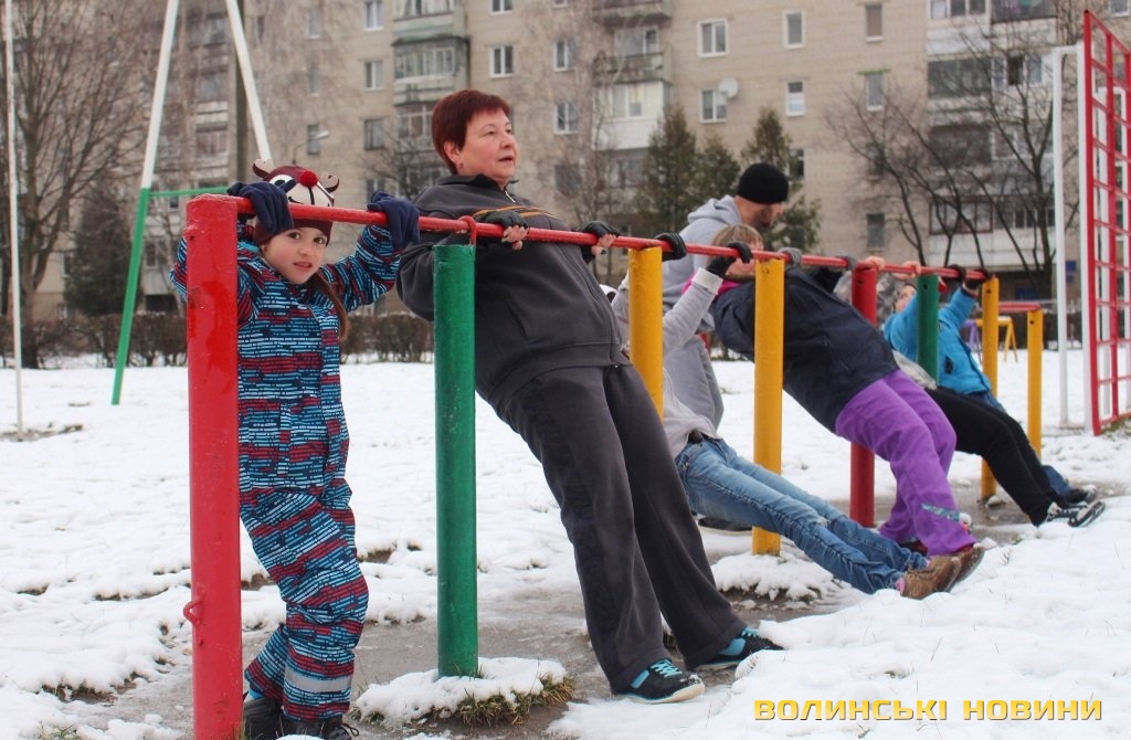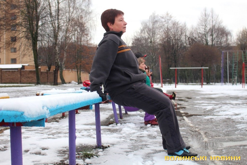 Спортсмени уміло виконували вправи, оскільки зібралися постійні учасники недільної акції. А діти встигали всюди: і підхід виконати, і сніжкою поцілити, і проламати тоненький лід у мілкій калюжі;)