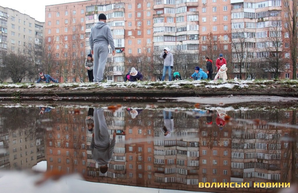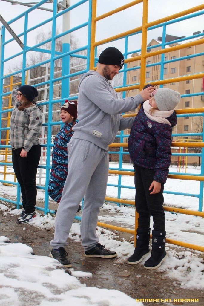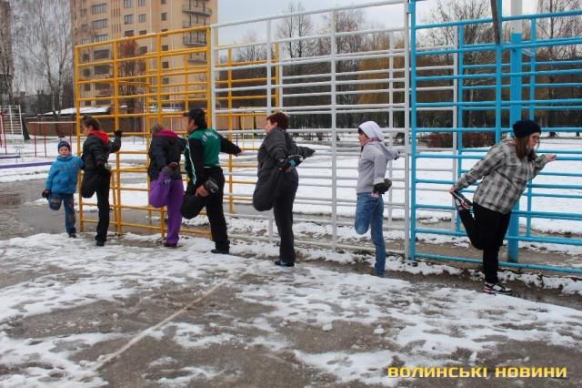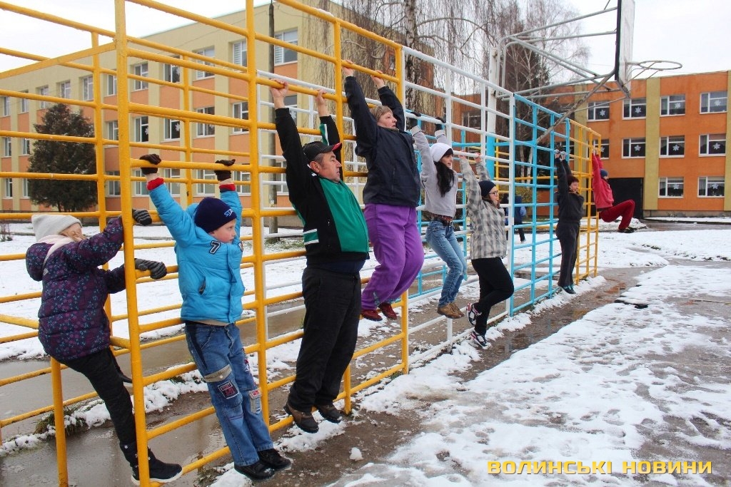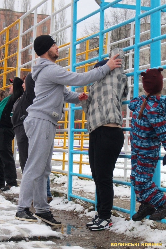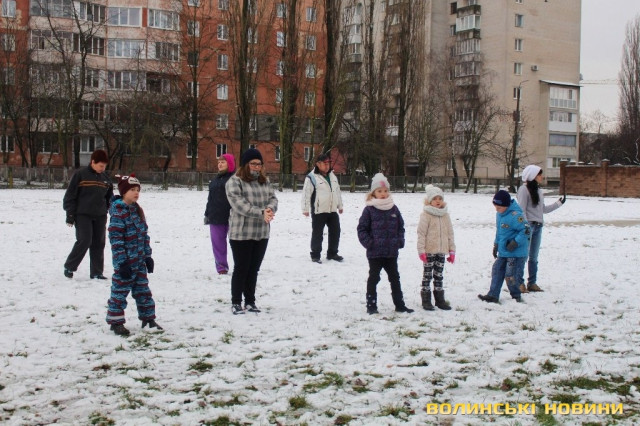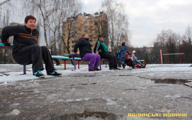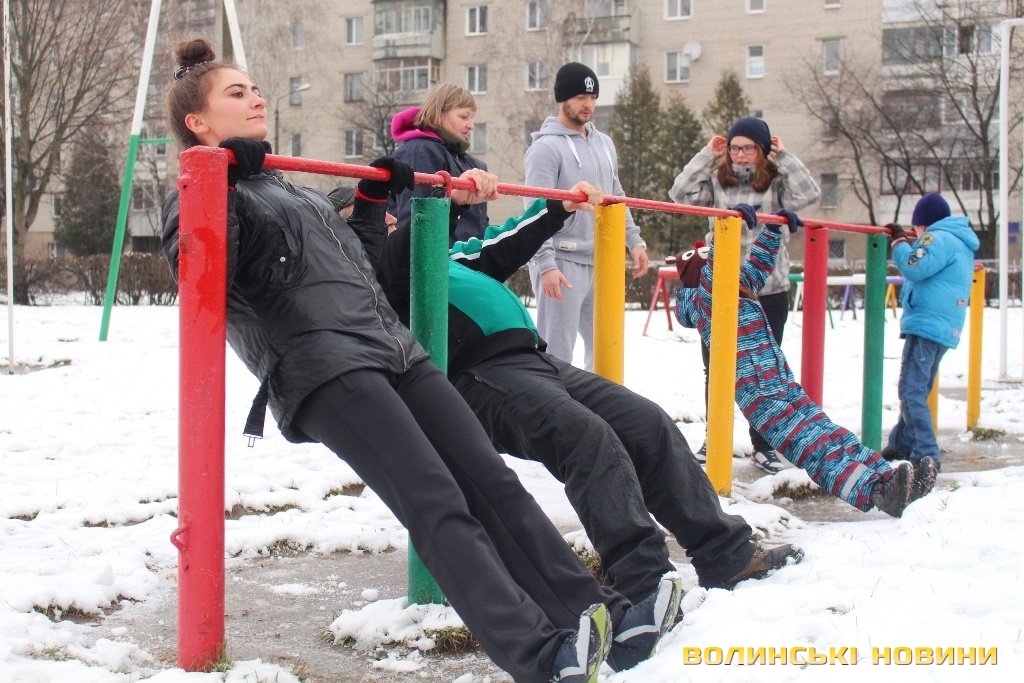 Спортсмени уміло виконували вправи, оскільки зібралися постійні учасники недільної акції. А діти встигали всюди: і підхід виконати, і сніжкою поцілити, і проламати тоненький лід у мілкій калюжі;)