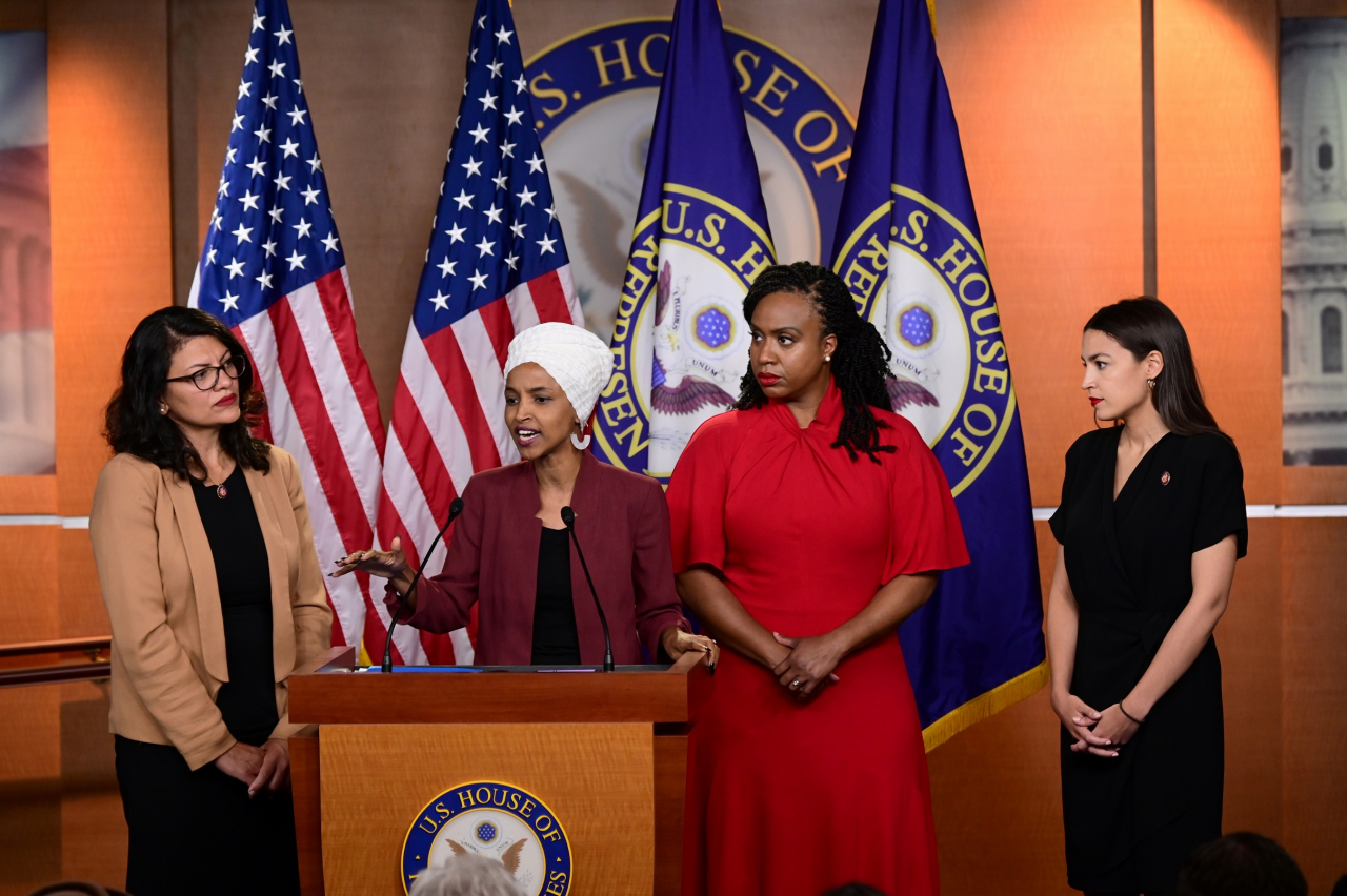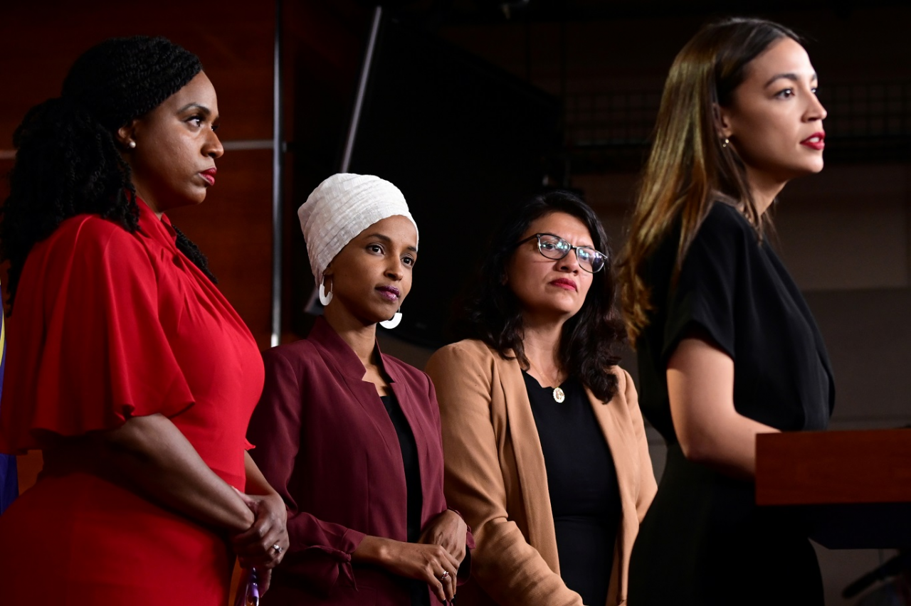 Це Ільхан Омар із Сомалі, яка приїхала до США в 12-річному віці, Олександрія Окасіо-Кортес, предки якої родом з Пуерто-Ріко, Рашида Тлейб, яка має палестинське коріння, та афроамериканка Аяна Преслі. При цьому останні троє народилися в США та є американськими громадянами з перших днів свого життя. А Омар отримала громадянство США за п’ять років після приїзду в статусі біженки зі своєю сім'єю.Аяна Преслі, Ільхан Омар, Рашида Тлейб, Олександрія Окасіо-Кортес / Фото: REUTERS / Erin Scott
