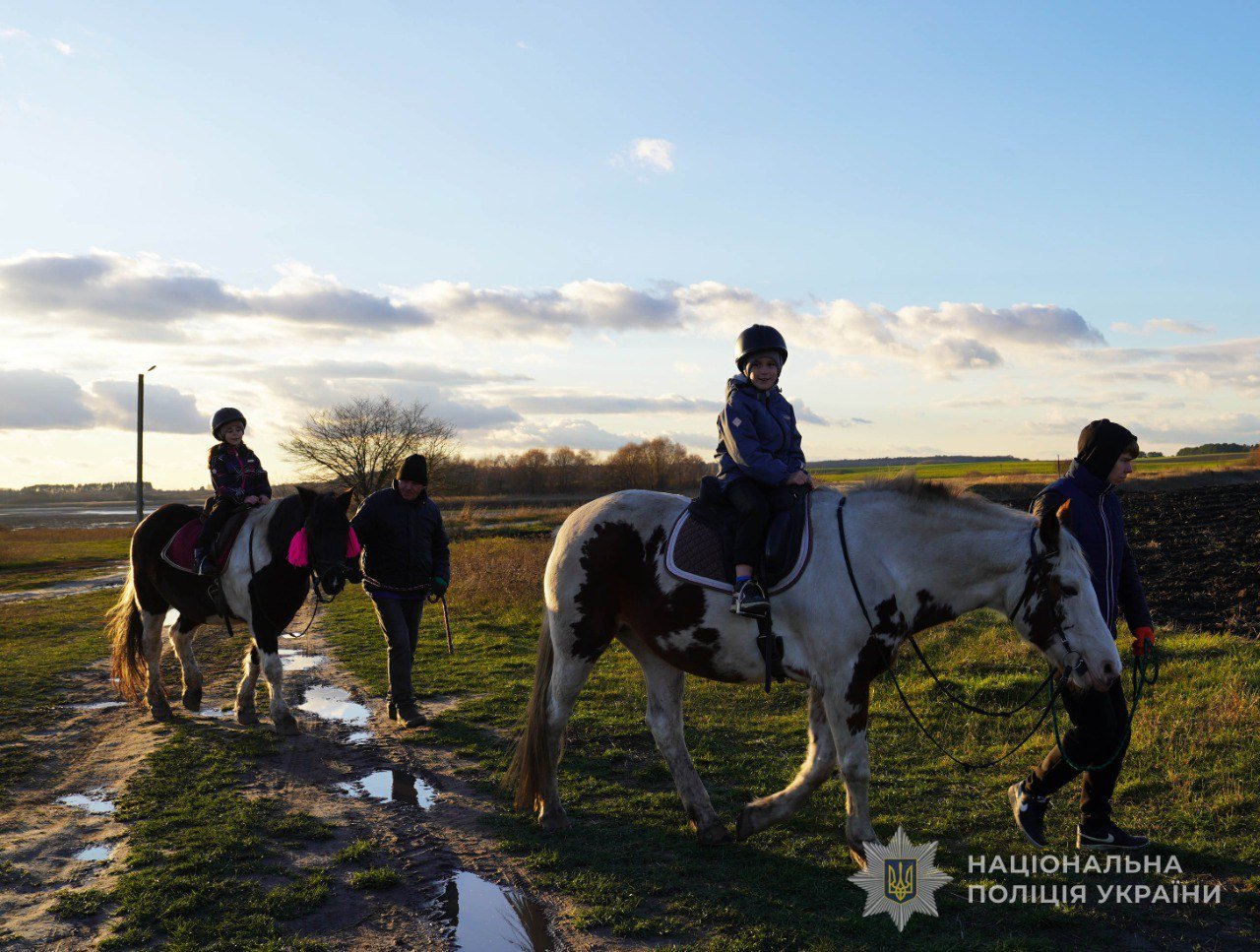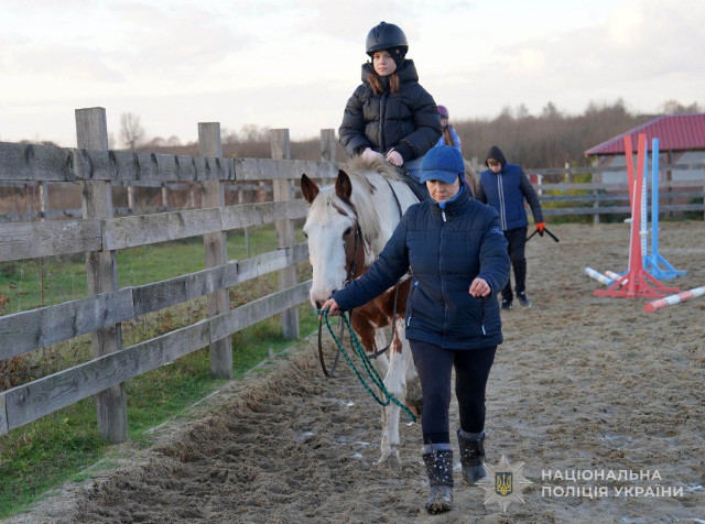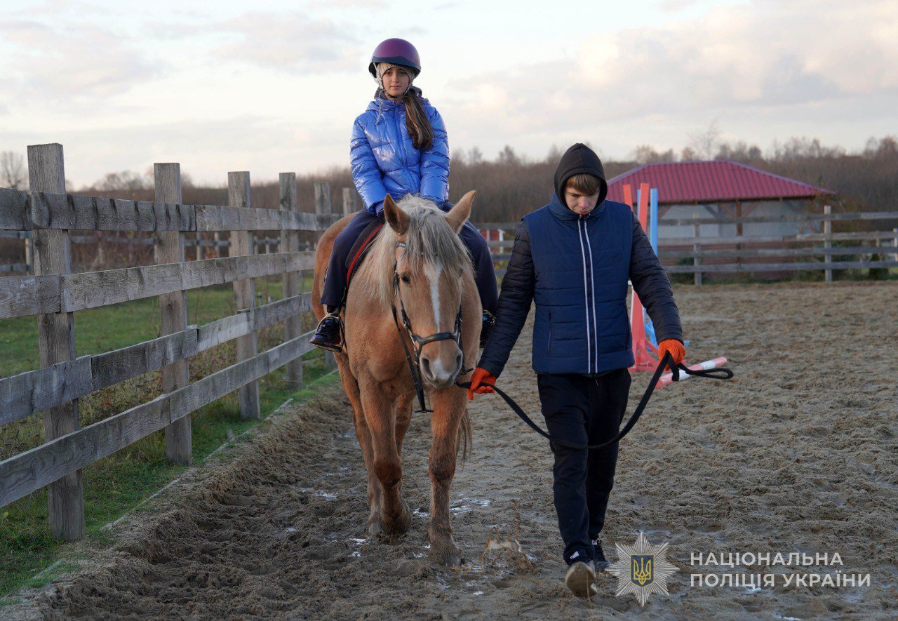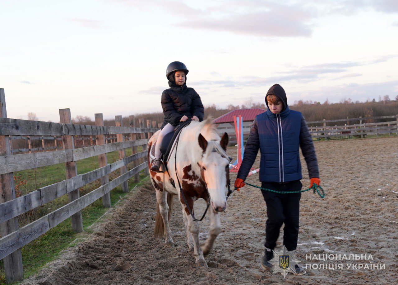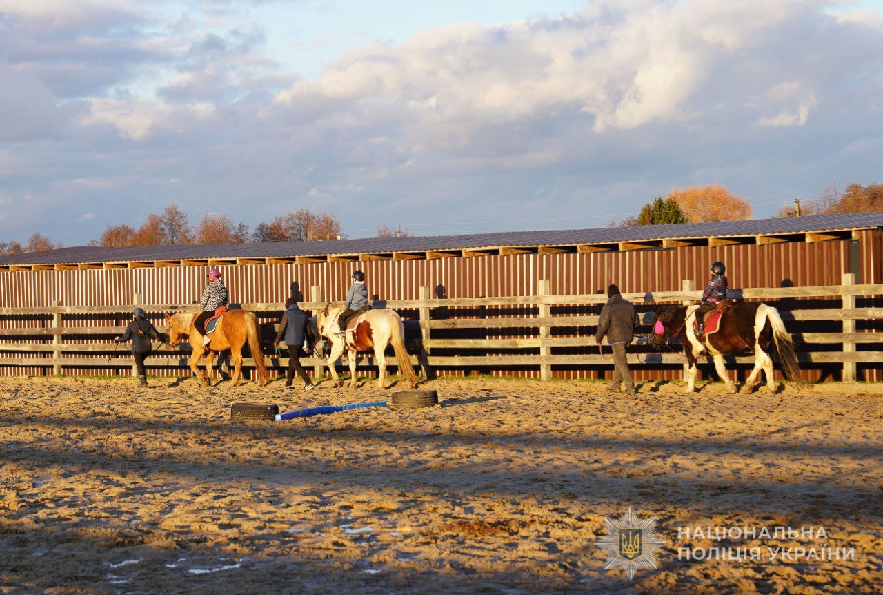 Заняття з іпотерапії, оздоровчої верхової їзди, рекреації та соціальної реабілітації для ветеранів та ветеранок і їхніх дітей організовано вже не вперше. Цього разу долучилися поранені поліцейські-добровольці з стрілецького батальйону з дітьми, а також дітки загиблого Захисника з бригади «Лють» Романа Гіренка Марк і Аня.