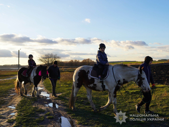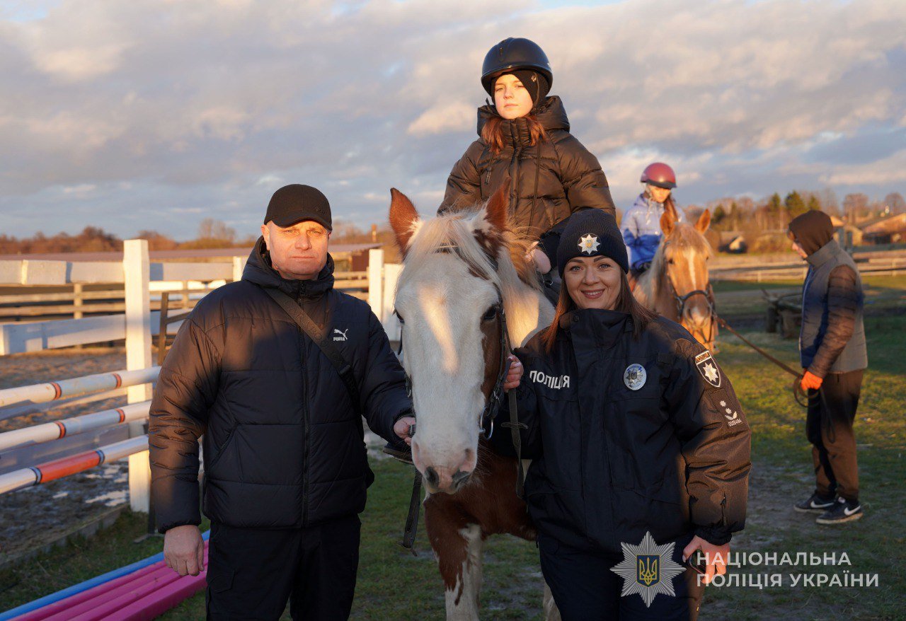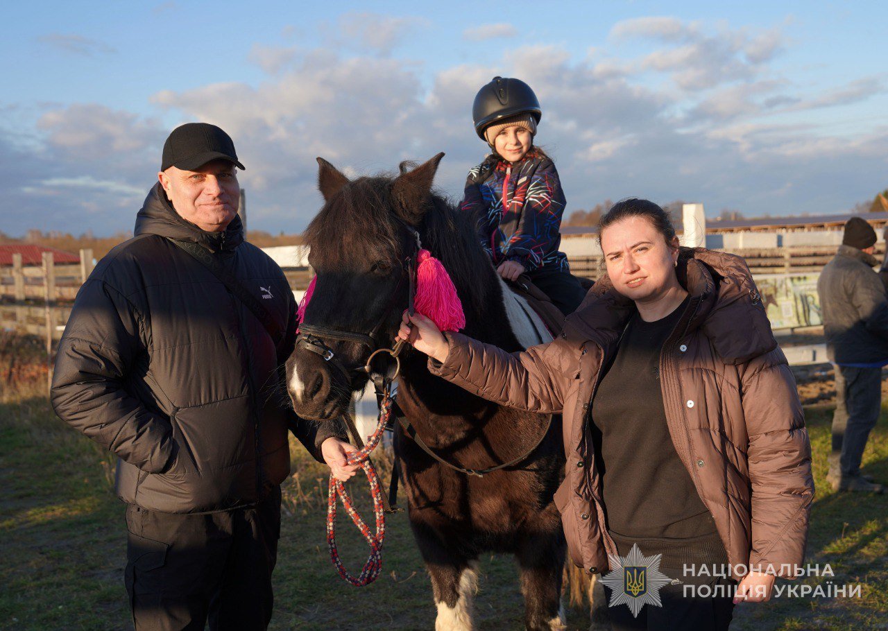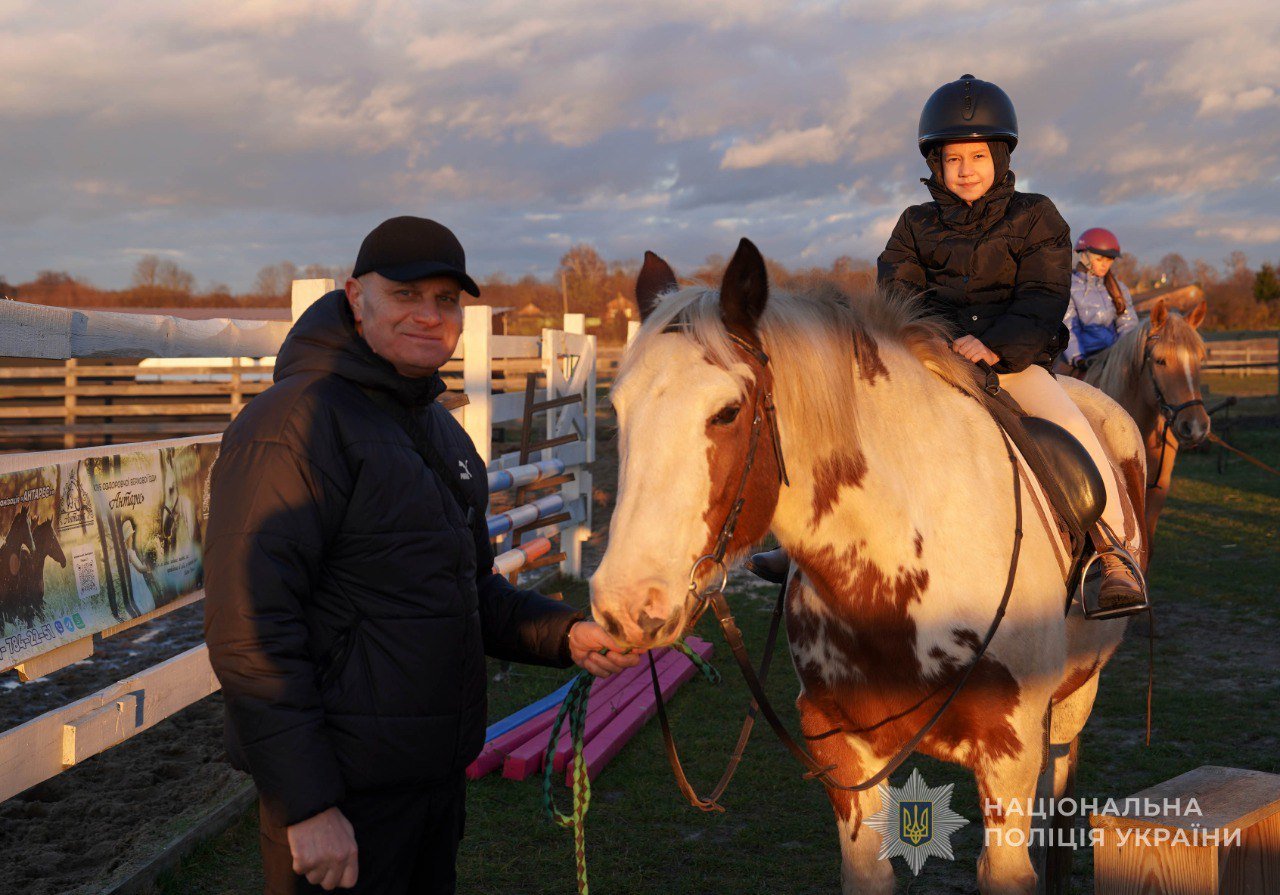 Заняття з іпотерапії, оздоровчої верхової їзди, рекреації та соціальної реабілітації для ветеранів та ветеранок і їхніх дітей організовано вже не вперше. Цього разу долучилися поранені поліцейські-добровольці з стрілецького батальйону з дітьми, а також дітки загиблого Захисника з бригади «Лють» Романа Гіренка Марк і Аня.