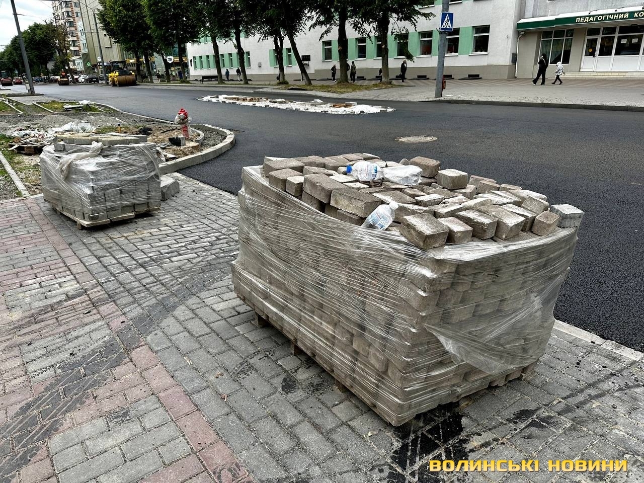 На проспекті Волі в Луцьку на ділянці від вулиці Шопена до Київського майдану завершили вкладання верхнього шару дорожнього покриття. На черзі – укладання бруківки, влаштування під’їздів, встановлення решіток зливової каналізації, реконструкція зовнішнього освітлення, нанесення горизонтальної розмітки, встановлення дорожніх знаків, облаштування «розумних» зупинок громадського транспорту, озеленення, розміщення лав і урн для сміття.