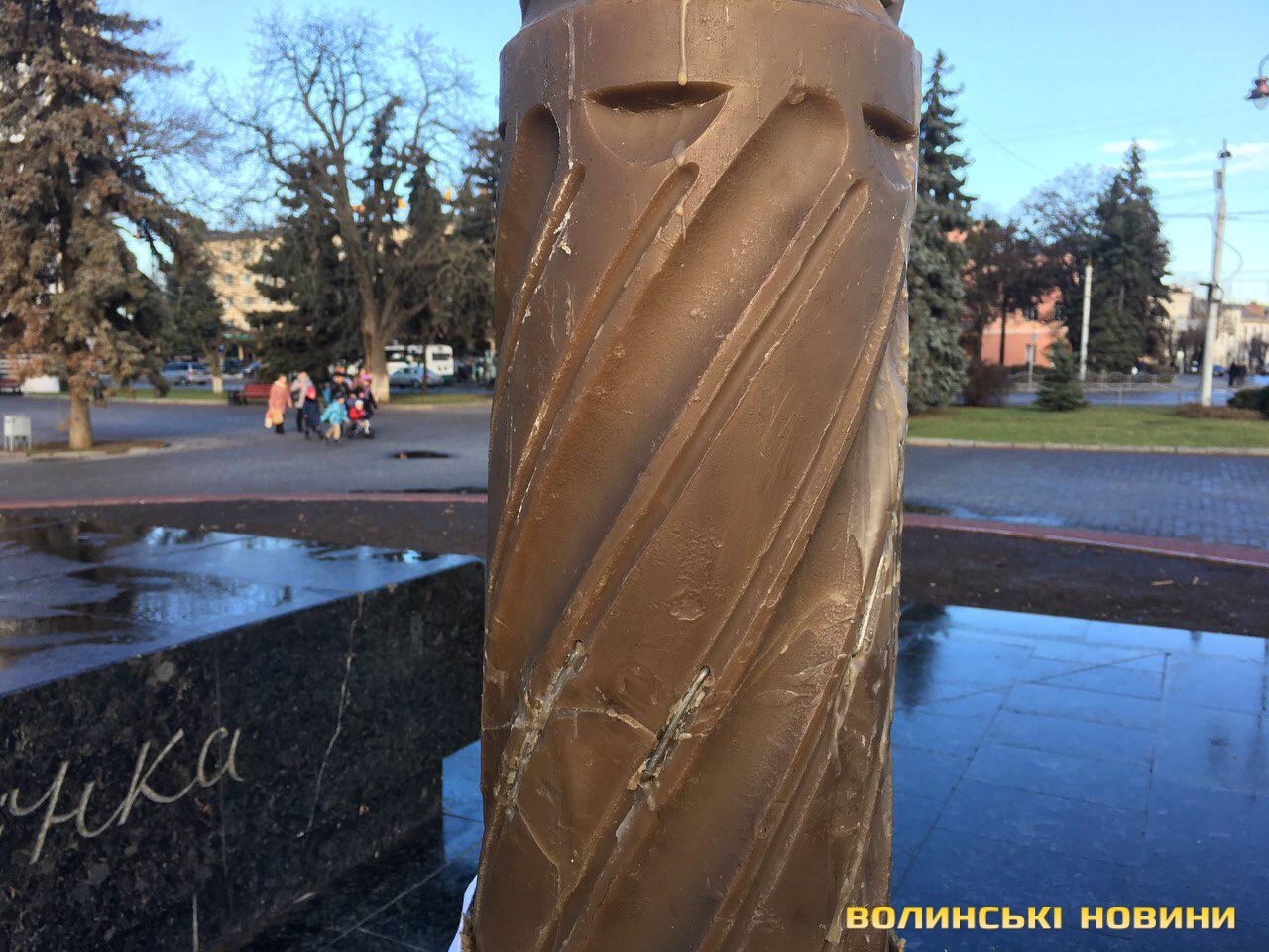Оформляв свічу волинський різьбяр по дереву Віктор Мазур. Зі слів Володимира Дмитрука, деякий час після відливання віск має пластичну форму, тоді з ним можна працювати.