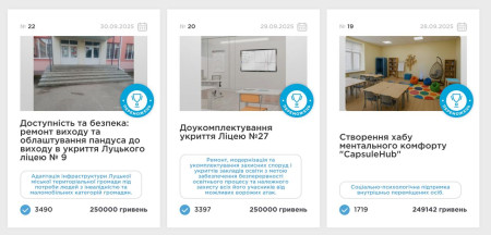 У Луцькій громаді завершилося голосування за проєкти конкурсу Бюджету участі 4.5.0. Серед них були присвячені закупівлі дронів для військовослужбовців, реабілітації ветеранів та ремонту шкільних укриттів.