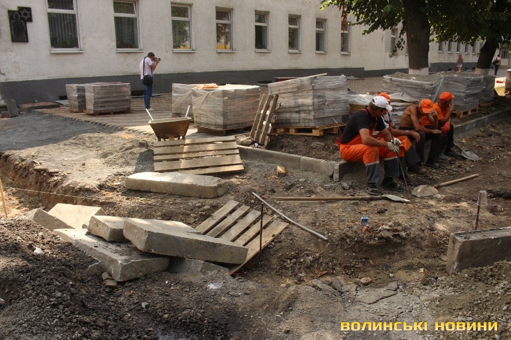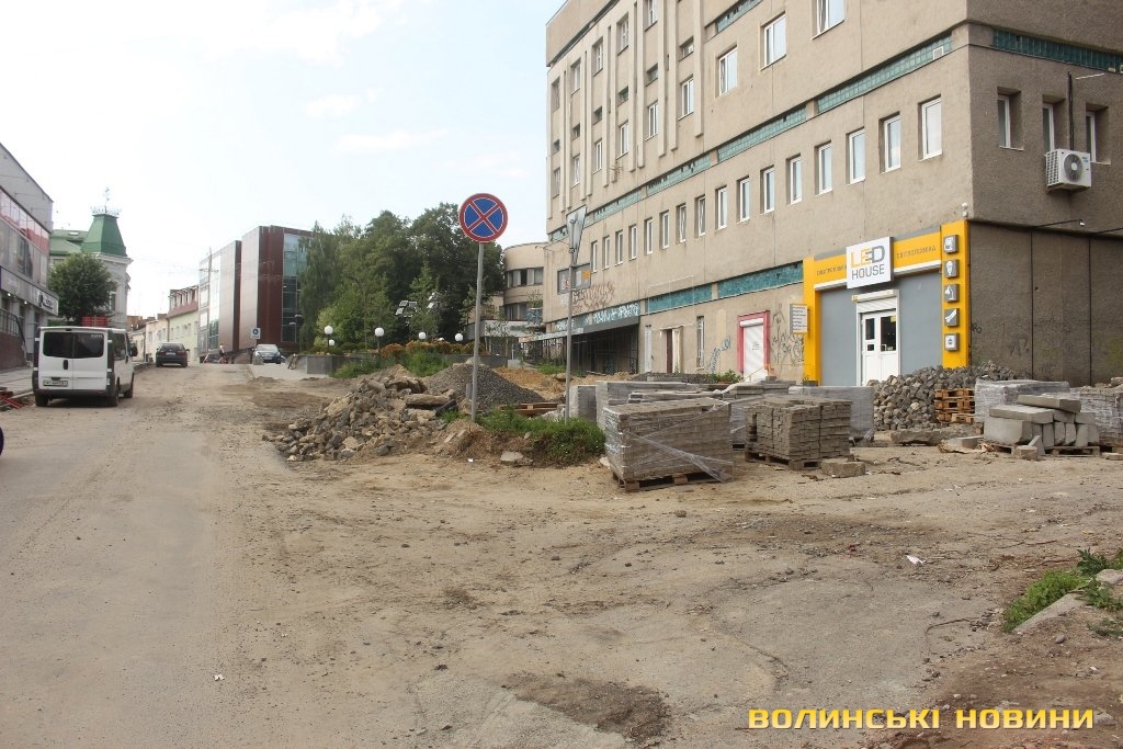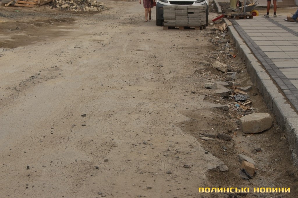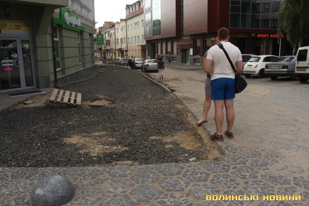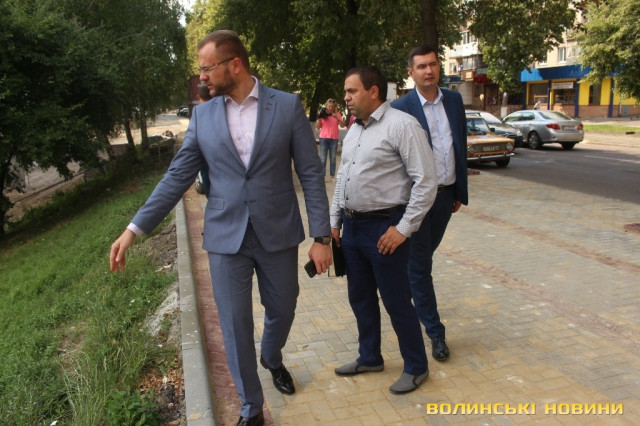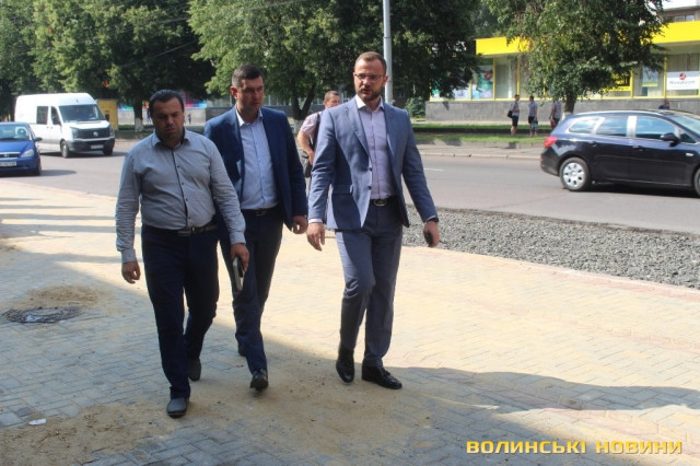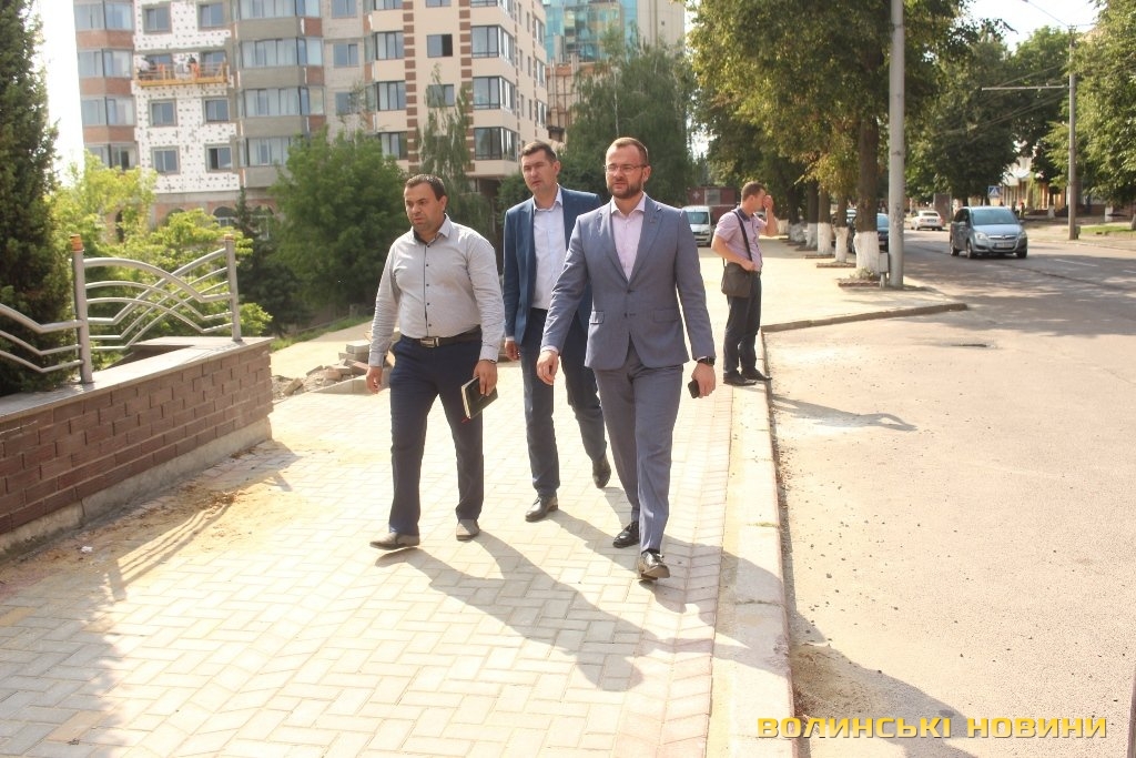 Розпочали огляд з вулиці Кривий Вал, де загальна протяжність реконструйованого полотна сягатиме 720 метрів.Далі оглянули хід робіт на проспекті Волі. Як виявилося, в окремих місцях бруківка з бордюром не на одній висоті, що створюватиме певні незручності для лучан. Окрім того, Ігор Поліщук зауважив очільнику департаменту ЖКГ міста, що газони мають бути охайні, а трава в окремих не має рости до колін, на що Юрій Крась пообіцяв виправити це найближчим часом.