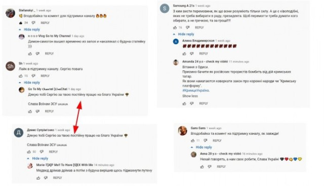 «Ми виявили як мінімум три різні групи скоординованих акаунтів, які з великою долею ймовірності є ботами та видавали себе за проукраїнських користувачів ресурсу. Ці групи висловлювали підтримку каналу та просували проукраїнські заклики, частину з яких модератори можуть оцінити як такі, що належать до мови ворожнечі», – констатує Приступа.