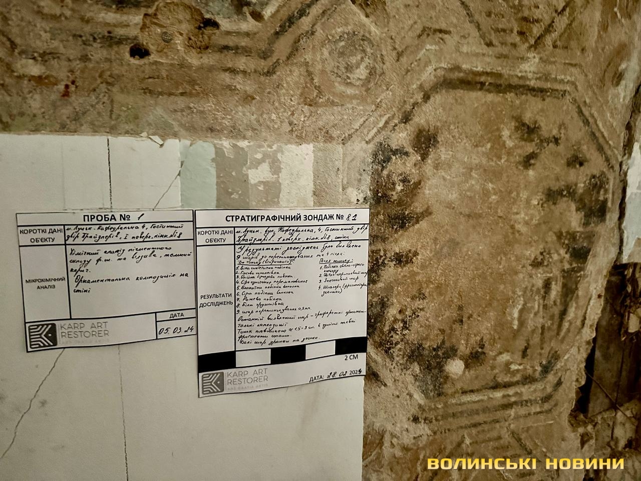 У нас завершився етап технологічних досліджень. Ми відібрали проби для аналізів хімічної структури тинків і пігментного складу в’язево-фарбового шару, щоб зрозуміти, яка техніка виконання розписів. Це дозволить скласти проєктно-кошторисну документацію для подальшої реставрації пам’ятки», – пояснила Ірина Змієвська.Як нагадав краєзнавець, керівник відділу охорони культурної спадщини Луцької міської ради Олександр Котис, споруда на вулиці Кафедральній, 4 у Луцьку – це пам’ятка архітектури місцевого значення початку ХХ століття, відома як Гостинний двір чехів Прайзлерів. У двоповерховому комплексі будівель свого часу містилися готель із рестораном, казино, кімната відпочинку, магазин і чеський клуб.
