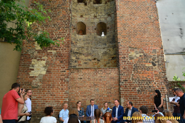 Прес-конференція за участі делегації з Луцька та представників муніципалітету міста Любліна відбулася 14 червня біля Готичної вежі. Цю локацію для проведення зустрічі обрали не спроста, адже спільний польсько-український проєкт передбачає реновацію цієї історичної споруди, де зараз гніздяться голуби.