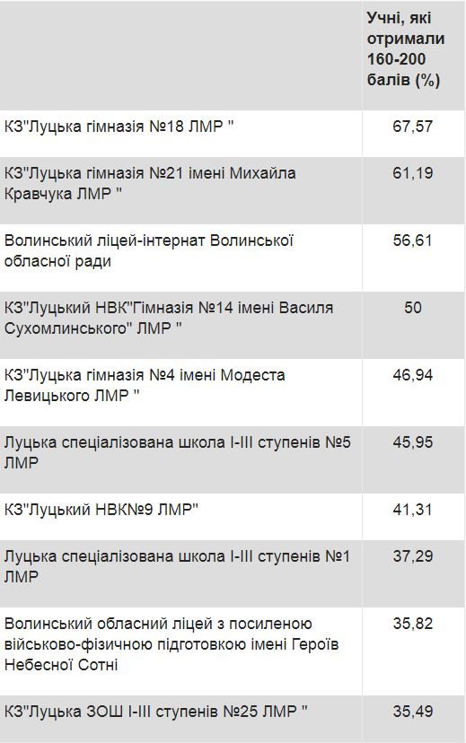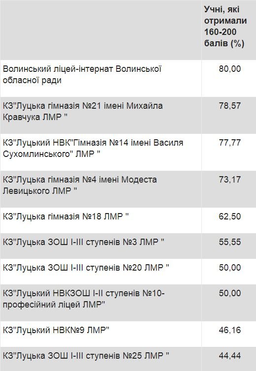 Порівнюючи з аналогічними даними минулого року, учні луцьких гімназій № 18, 21, 14 стабільно показують високий показник.