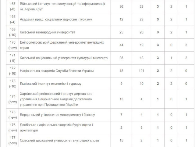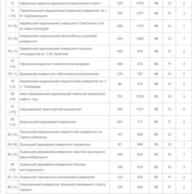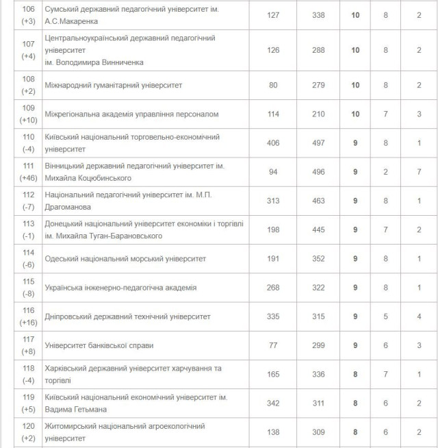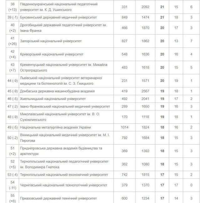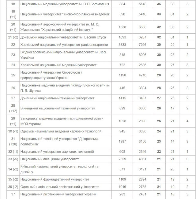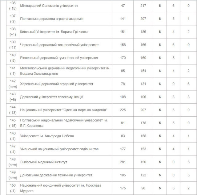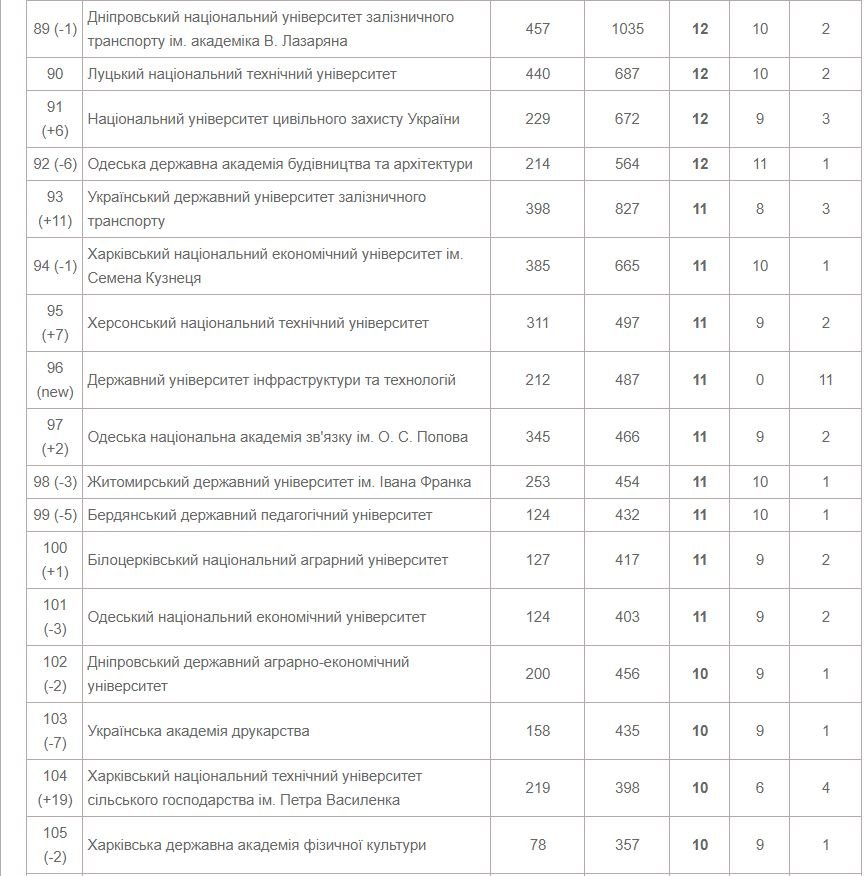 У рейтинговій таблиці вищі навчальні заклади України ранжовані за індексом Гірша — кількісним показником, що базується на кількості наукових публікацій і кількості їх цитувань.