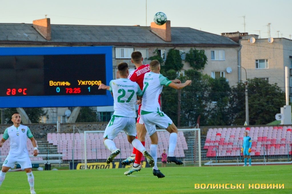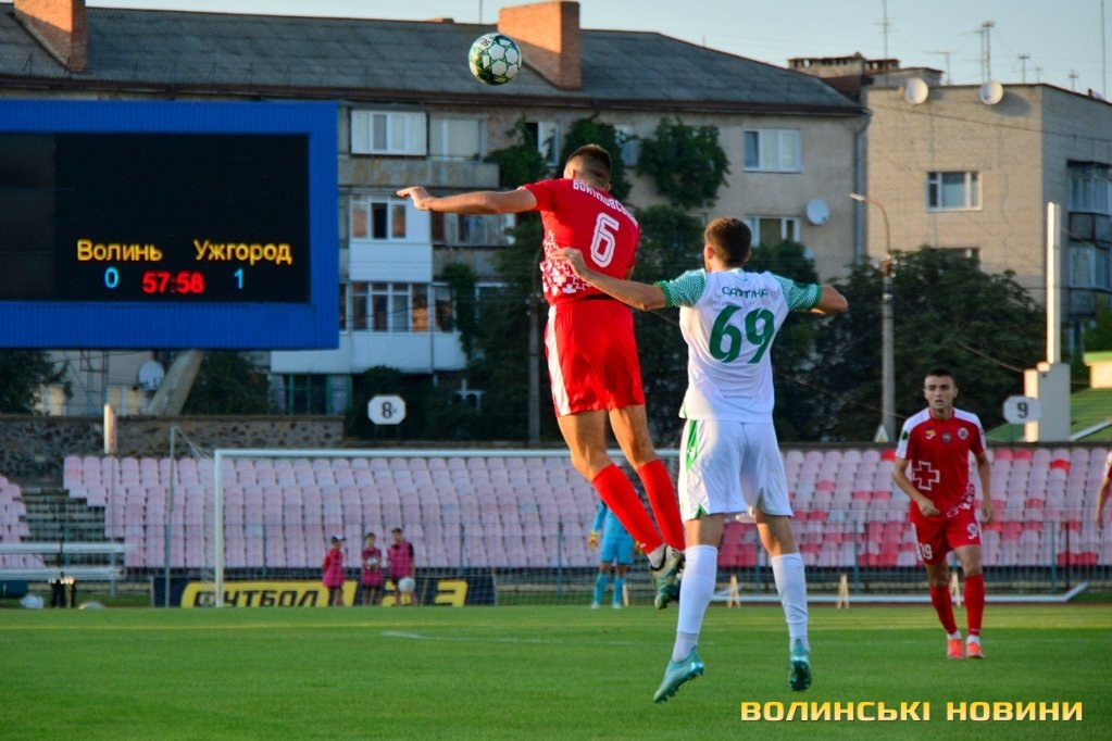 У четвертому турі «Волинь» мала зіграти з «Ужгородом». Більшість нинішніх молодих футболістів «хрестоносців» були знайомі з цією командою за минулим сезоном, коли вони виступали у Другій лізі. Саме за підсумками сезону ужгородці підвищилися у класі, вийшовши до Першої ліги. Щоправда старт другого за силою дивізіону «Ужгороду» зовсім не вдався, адже команда програла три стартові гри, не заробивши жодного очка.В будь-якому разі молодим «хрестоносцям» не варто було недооцінювати суперників. Головний тренер лучан Альберт Шахов на лаві для запасних хвилювався так, ніби його команда виходила у фінал Ліги чемпіонів.І «Волинь», і «Ужгород» почали гру обережно, особливо не ризикуючи. Перший момент у матчі мав молодий нападник «Волині» Богдан Кобзар – він наважився на удар з-за меж карного майданчика, однак пробив над поперечиною.Ближчим до взяття воріт був екснападник «Волині», а нині футболіст «Ужгорода» Віктор Хомченко: замикаючи простріл партнера з правого флангу, гравець гостей влучив у стійку.