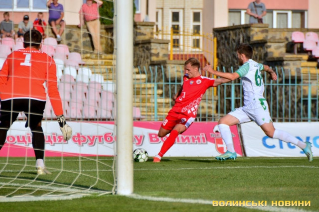 А вже з 70 хвилини височенний центрбек Войтіховський грав попереду, тренерський штаб сподівався, що він побореться у чужому штрафному за верхові м’ячі. На 78 хвилині після розіграшу штрафного «Волинь» заробила пенальті: Ющишин виносив кулаками м’яч та зачепив Дениса Теслюка – арбітр вказав на точку. Виконувати одинадцятиметровий взявся Войтіховський, однак поклавши голкіпера, сам центрбек влучив у поперечину.Навіть попри це молодь «Волині» не стала здаватися – невдовзі свій момент мав Богомаз, який вийшов на заміну, але перекинув і воротаря, і ворота.