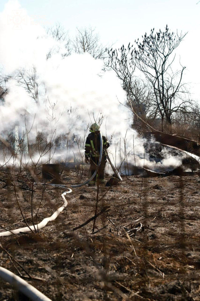 Рятувальники за допомогою водяного ствола о 14:20 ліквідували займання сухої трави на площі 1 га та зупинили поширення вогню на інші поруч розташовані споруди, проте дерев’яної будівлі врятувати не вдалося.