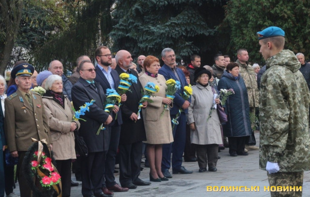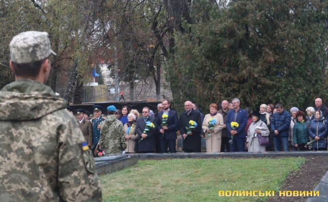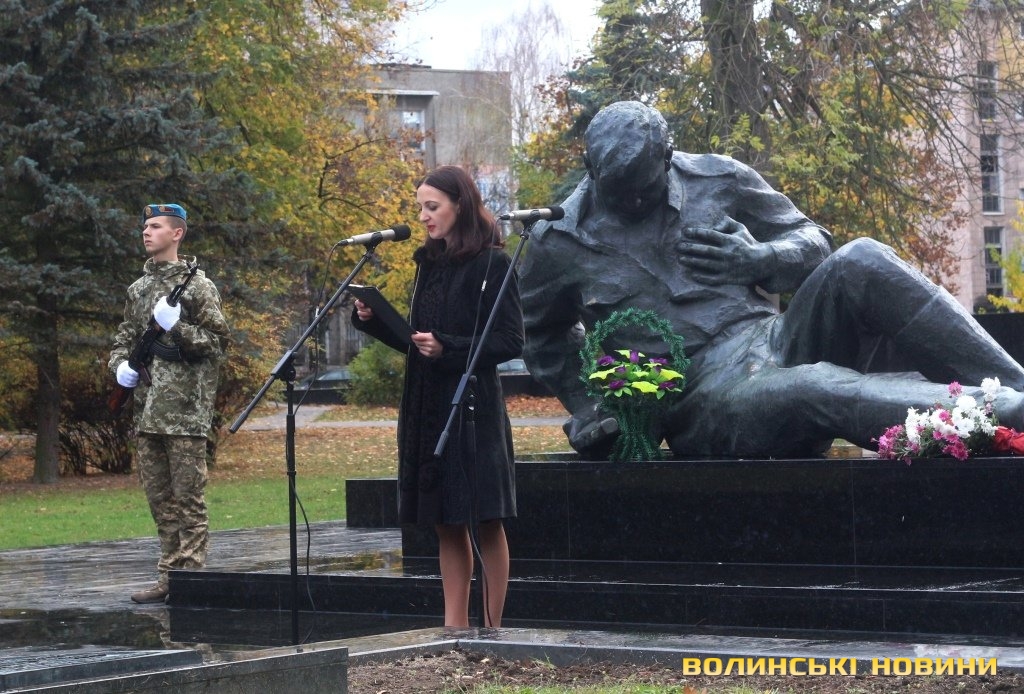 Шану тим, хто поклав життя, боронячи Україну від нацистів, віддали представники обласної та міської влади, духовенства, ветерани та свідки вікопомних подій війни. Зі слів очевидців трагічних подій кривавої Другої світової війни, до цього дня йшли від червня 1941 року – складно було як на фронті, так і в тилу. Волинь вдалося звільнити на декілька місяців раніше, ніж всю територію України. З їхніх слів, молоде покоління українців варто виховувати на історії цієї війни: так, у 1944-45 роках юнаки навіть шкодували, що не встигли повоювати проти нацистів та особисто дати відсіч окупантам.Відповідно до закону про увічнення перемоги над нацизмом у Другій світовій війні 1939-1945 років визначили, що шанобливе ставлення до пам’яті про перемогу над нацизмом, ветеранів війни, учасників українського визвольного руху та жертв нацизму є священним обов’язком держави та громадян України. Однією з основних форм увічнення перемоги над нацизмом у Другій світовій війні є відзначення Дня вигнання нацистів з України. Молитву за спокій душ загиблих у роки війни прочитали священнослужителі Православної церкви України. Пам'ять полеглих також вшанували хвилиною мовчання, після чого квіти до монументу «Поранений солдат».